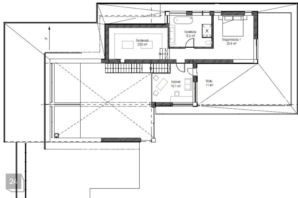 • Avatud ala (16,1 m²): Mitmekülgne ja valgusküllane ala, mis sobib ideaalselt lugemisnurgaks, kodukontoriks või loominguliseks tööruumiks. Avarast nurgast pääseb mugavalt rõdule (11 m²), kus saab nautida hommikukohvi või vaadet ümbritsevale loodusele.