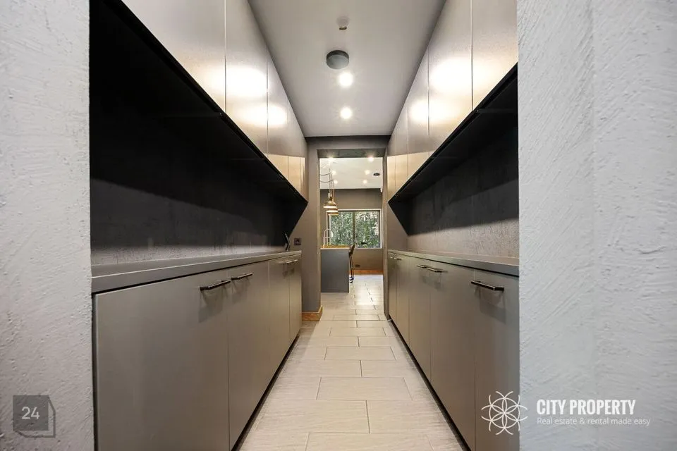 • Garderoob (13,4 m²): Stiilne ja praktiline garderoob, kus maast laeni sisseehitatud süsteemid pakuvad rohkelt hoiustamisvõimalusi nii riiete kui aksessuaaride jaoks, hoides kodu alati organiseerituna.