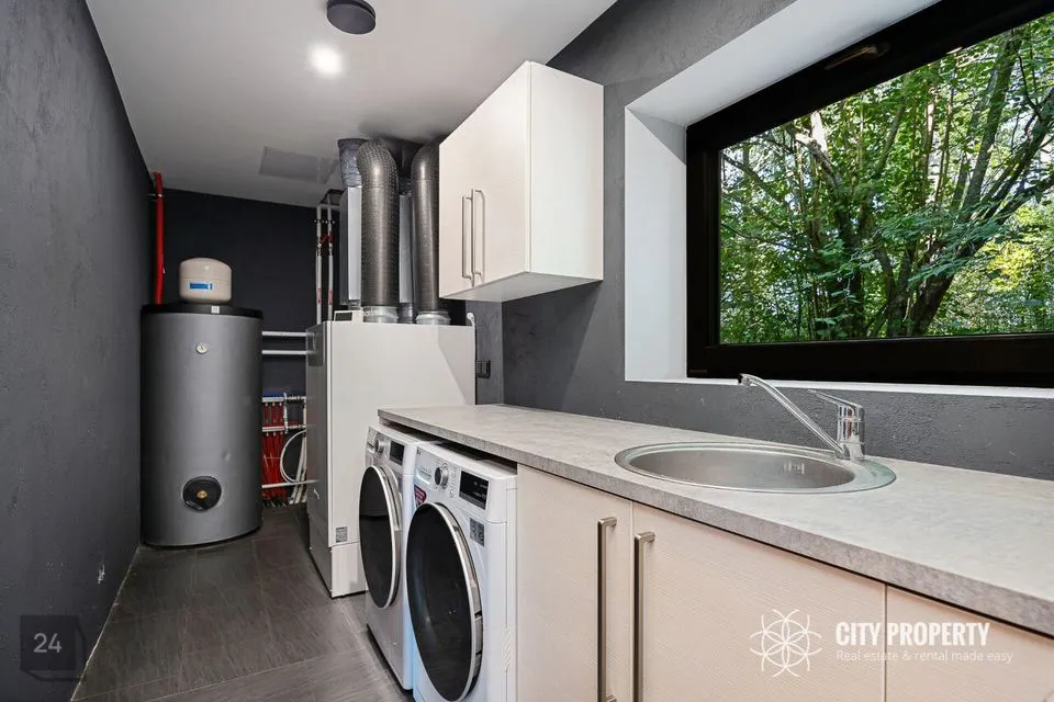 • Majapidamisruum (9,6 m²): Funktsionaalne ruum, kus on pesumasin ja kuivati ning kodu tehnoseadmed, pakkudes ideaalset kohta majapidamistöödeks ja kodu korrashoiuks.
