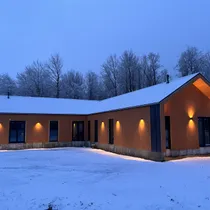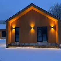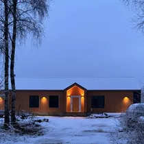 Avar ja valgusküllane elamu on projekteeritud L-kujuline selliselt, et moodustub tore terrassiga sisehoov, magamistsoon jääb ühele poole ning elutuba-köök ja saunakompleks teisele küljele.