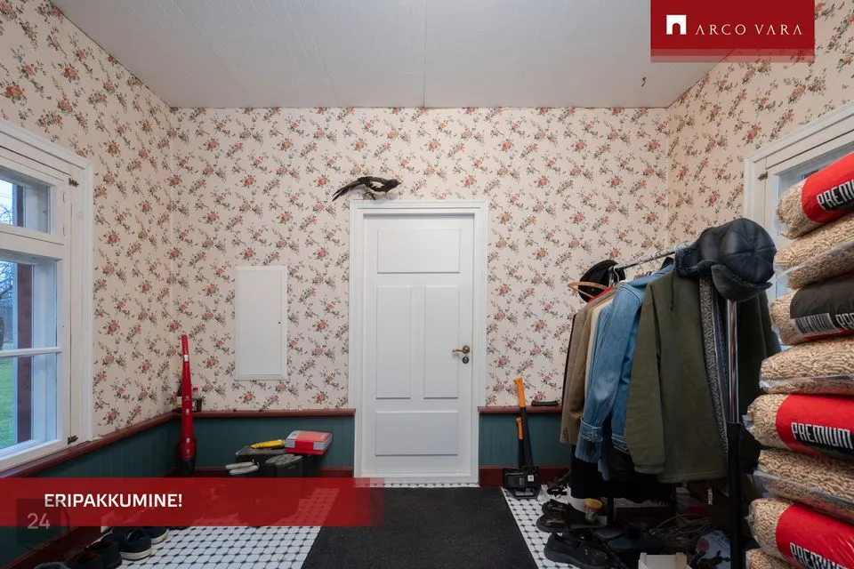 Majja sisenedes astud ruumikasse ja avarasse esikusse, millel on stiilne kahhelkividest põrand ja seinas lillemustriline tapeet. Esikus on ruumi nii palju, et manööverdama mahub kasvõi terve pere.