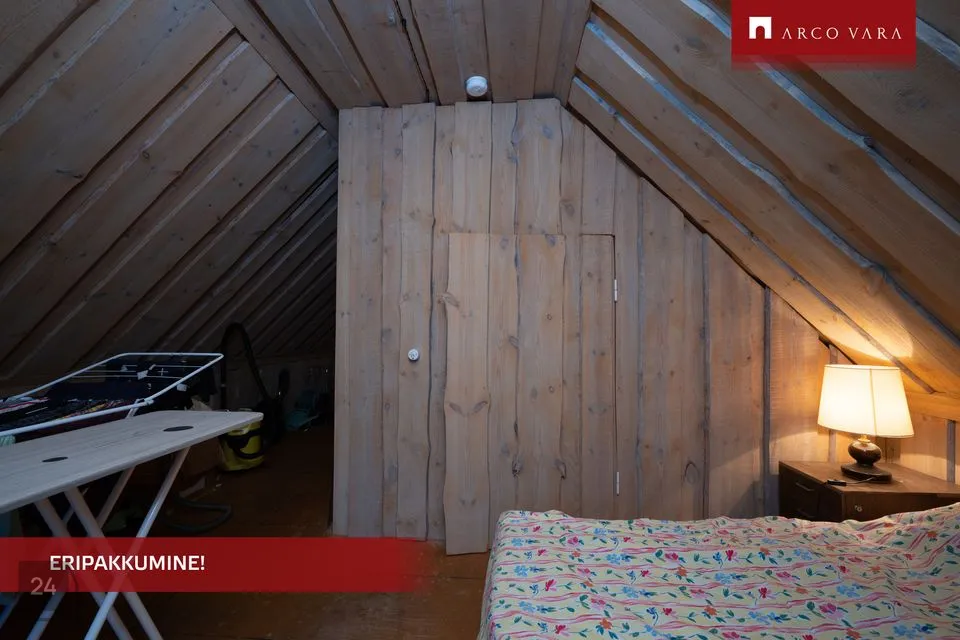 Magamistuba asub samuti alumisel korrusel, selle kõrvalt viib trepp pööningule, kus on kahe magamistoa võimalus.