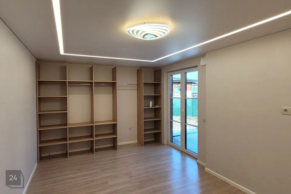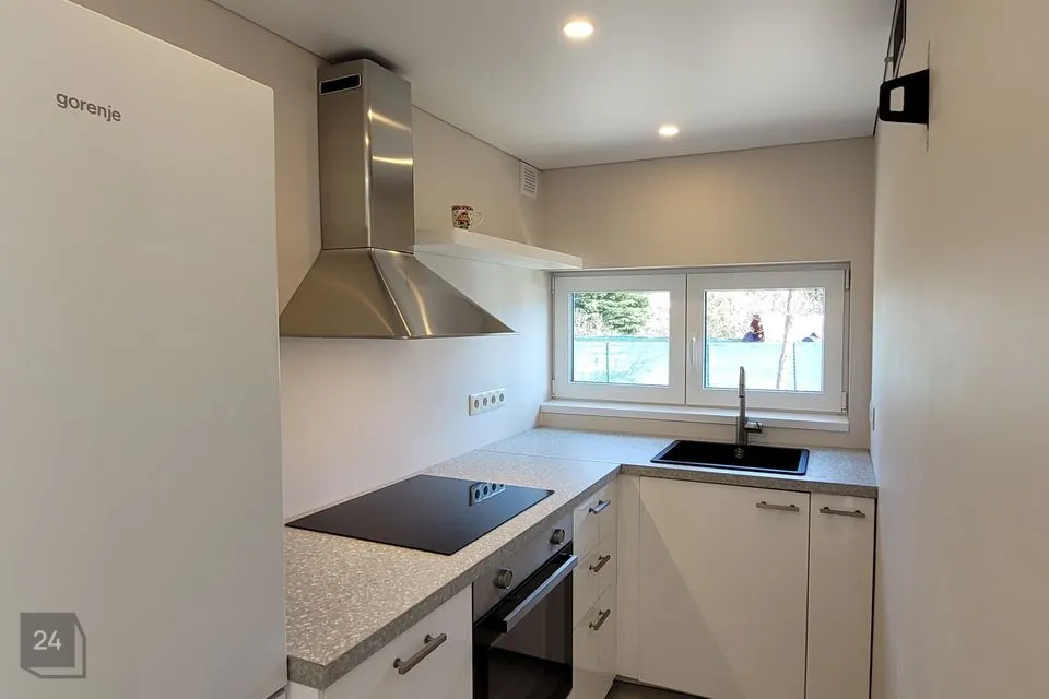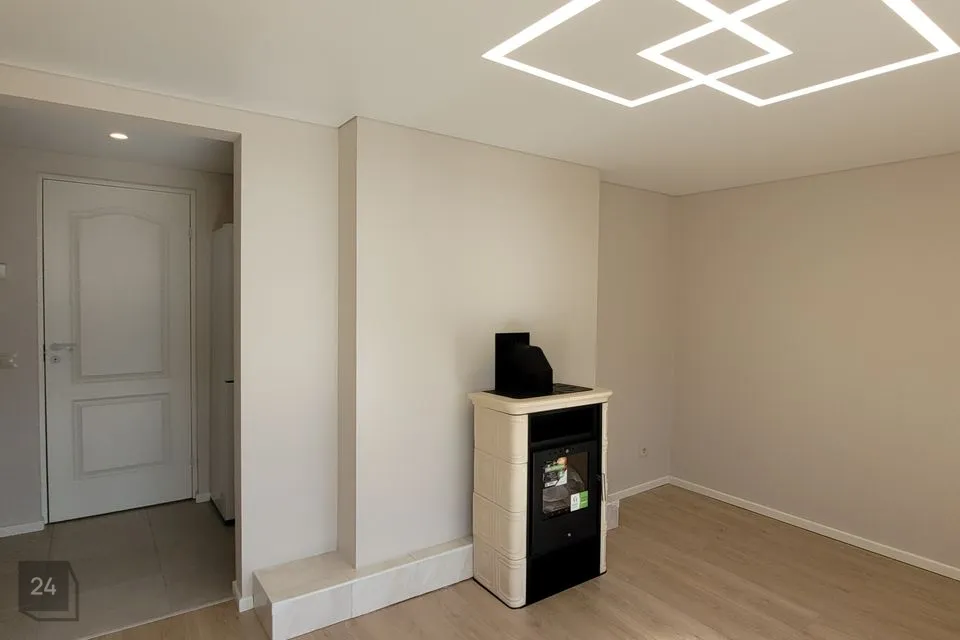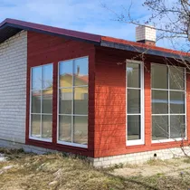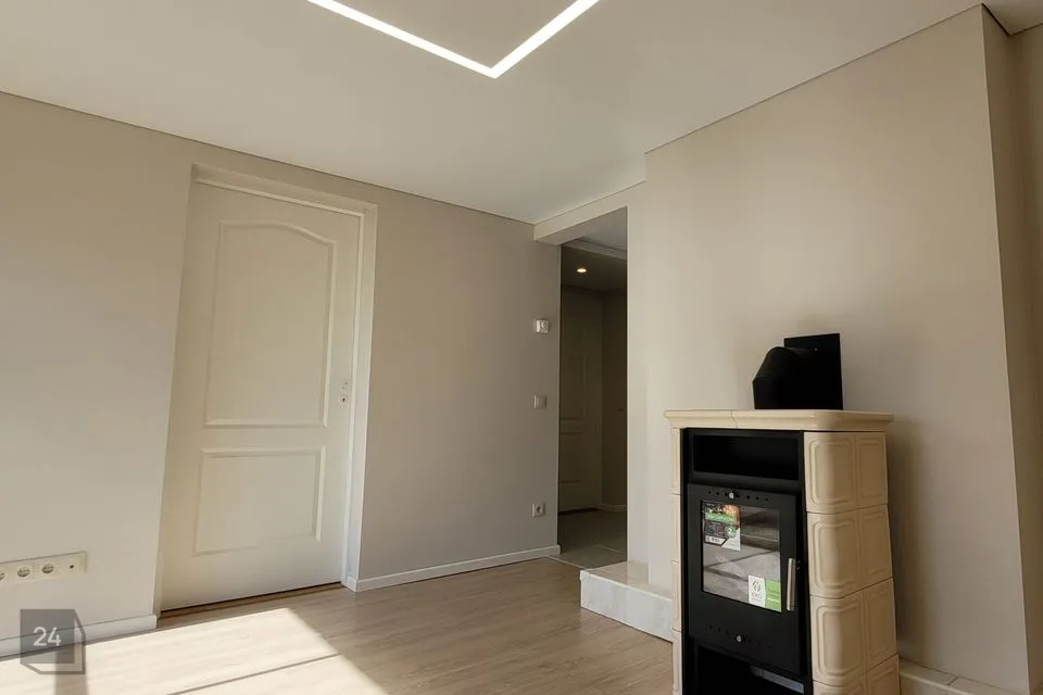 Ühekordse maja koosseisu kuulub 3 tuba, ühes toas kamin, elutoast pääs terrassile, esik, wc, duśiruum, köök ja tehnoruum.
