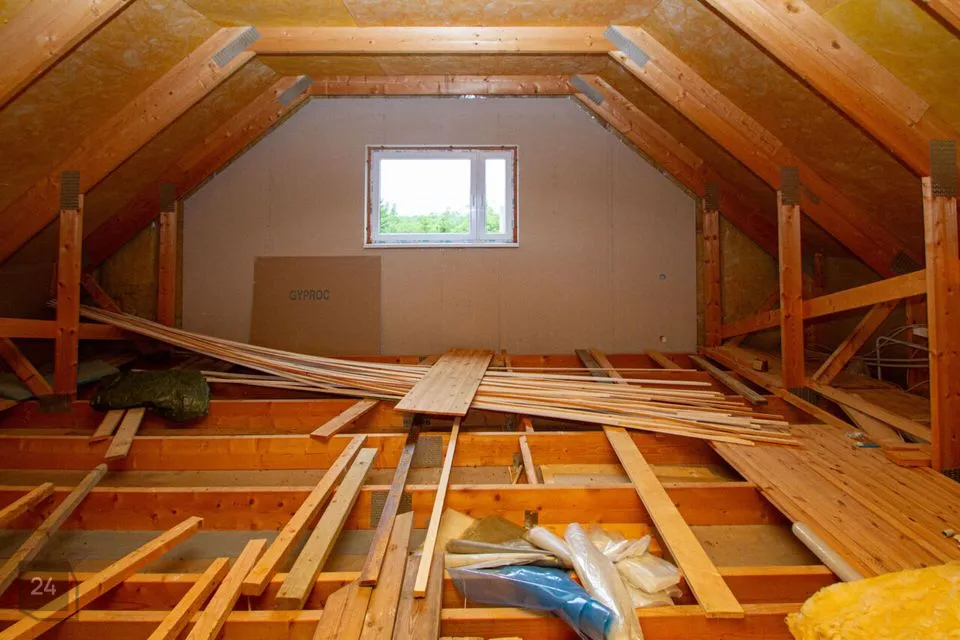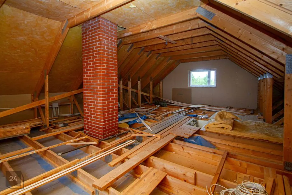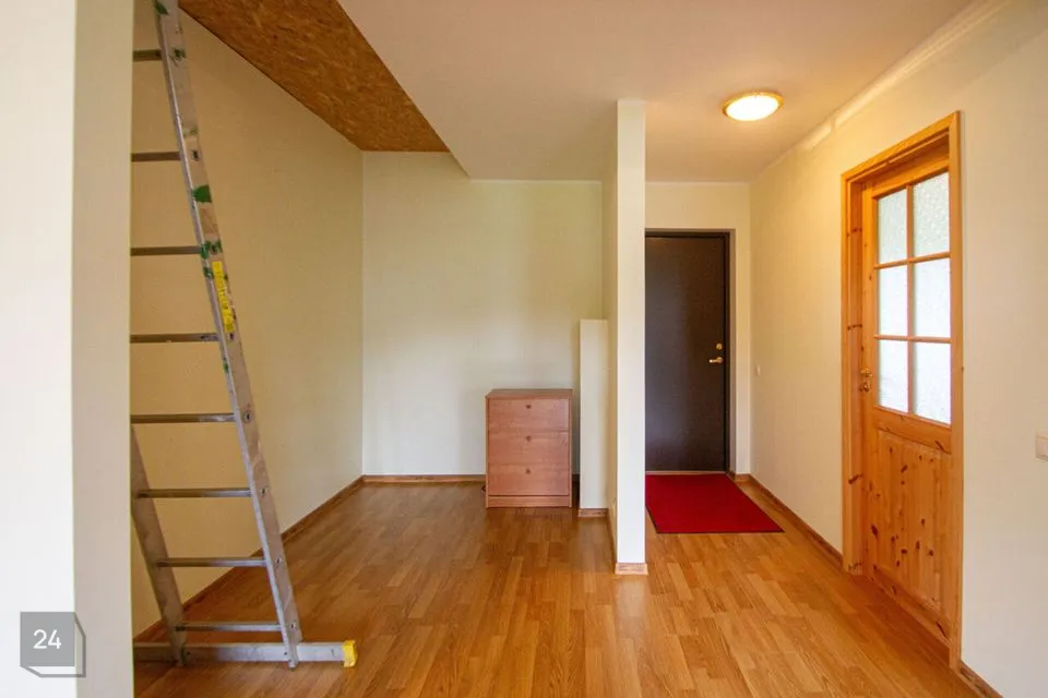 Teine korrus (projekti järgi) — kaks magamistuba ja teine vannituba (viimistlustööd on osaliselt lõpetamata, üles viib ajutine trepp).