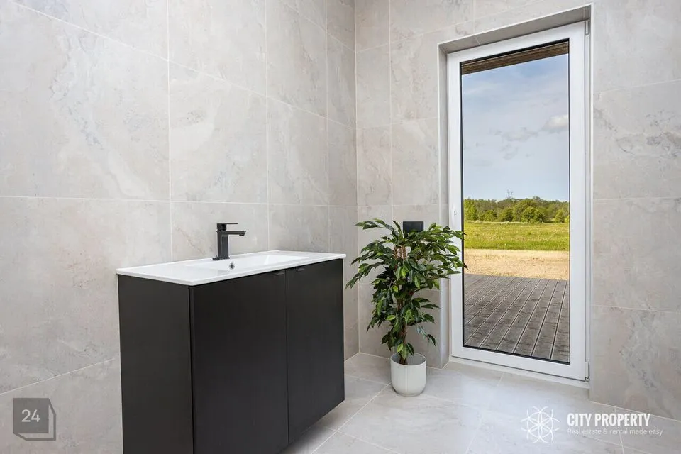 Majas asub avar aatriumiga elutuba-köök (59,5m²), 4 eraldi magamistuba (suurimas magamistoas eraldi garderoob), wc/dushiruum koos saunaga, lisaks eraldi wc/dushiruum ning tehnoruum. Elutoast ja sauna eesruumist pääseb lõunapäikesepoolsele suurele terrassile.
