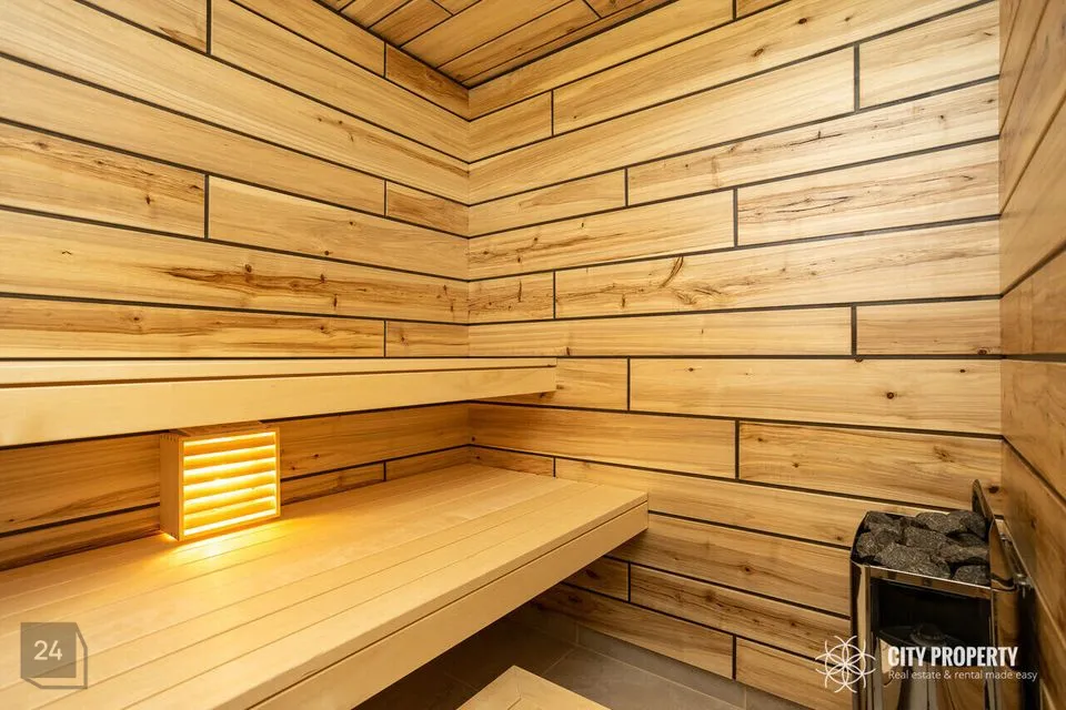 - Paigaldatud sanitaartehnika. Saunas Harvia elektrikeris.