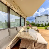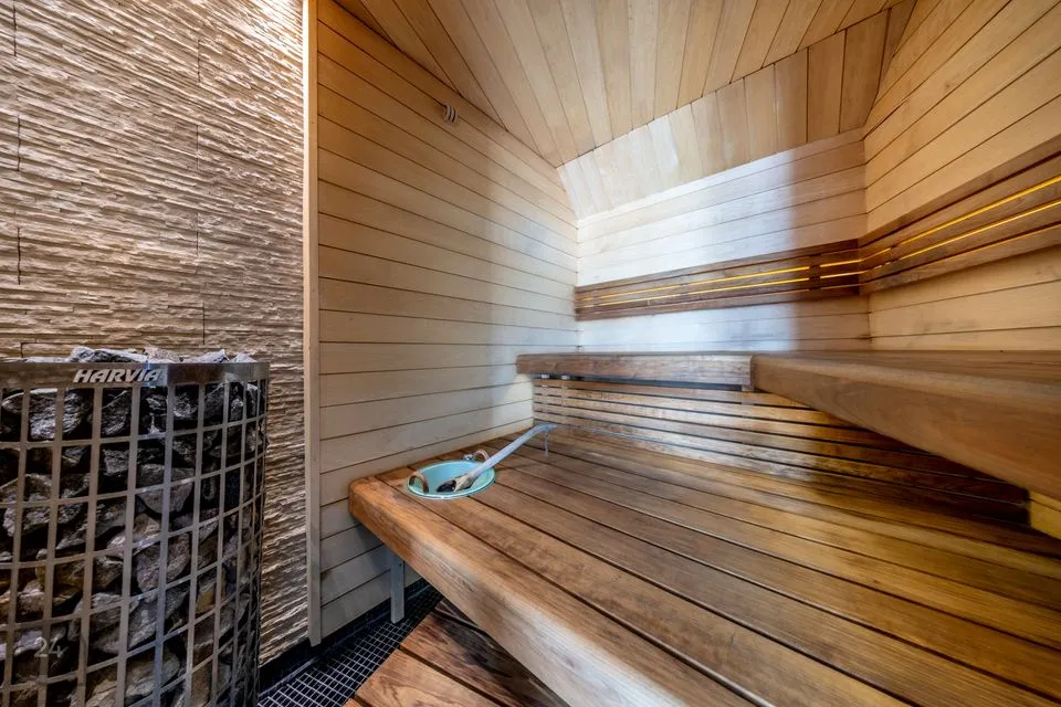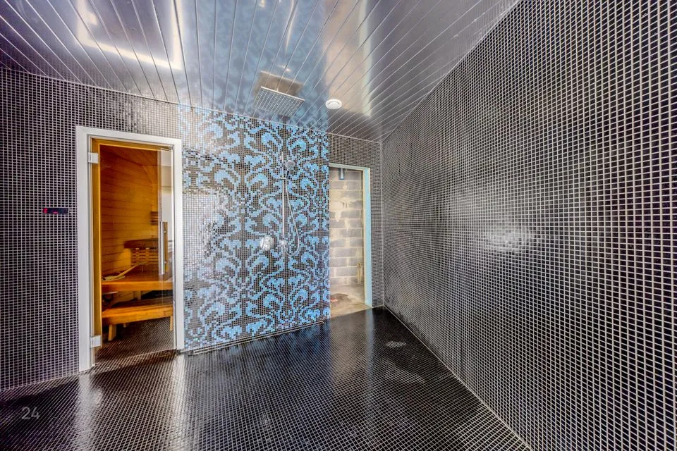 Esimesel korrusel asub sauna- ja lõõgastusala, suur mullivann, samuti terrass, mis avaneb päikese poolses hoovis.