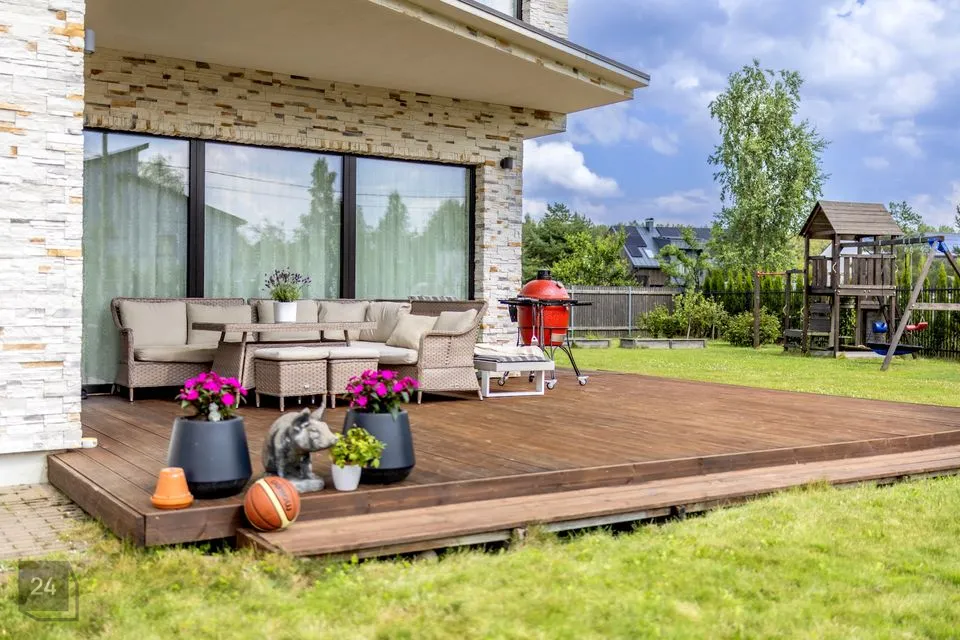 Krundil on hooldatud haljastus, lastemänguväljak ning suur garaaž kahele autole, lisaks saab parkida ka sissesõidu alale.
