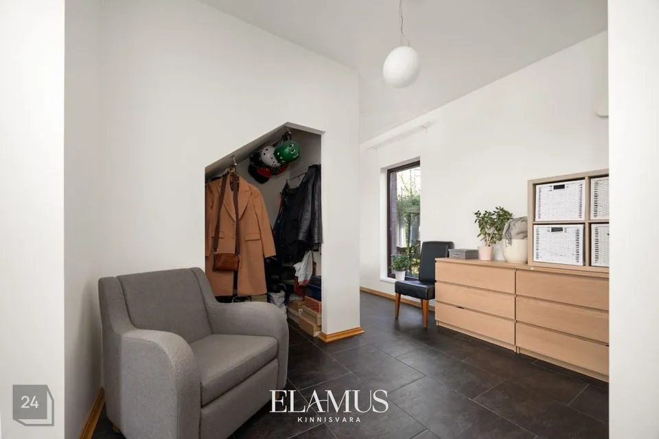 A spacious atrium connects the living house and garage in the middle, where you can leave all footwear before entering the house, do some exercise (the space can even be used as a gym, etc.).