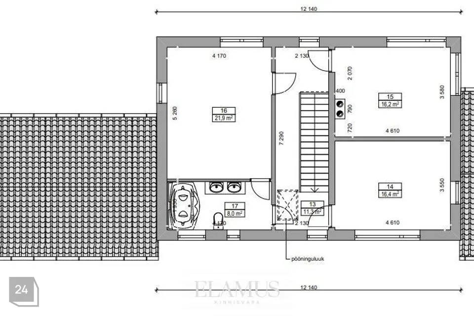 - Parents' bedroom on the right, with direct access to a private bathroom with a bathtub – luxury for every family!