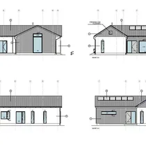 Hoone koosneb kahest ristkülikust, mis moodustavad L-kujundi. Hoone lühemasse ossa on projekteeritud esik, elutuba ja köök. Elutuba on avatud kuni katuseni, kaetud katuslaega. Teise hoone mahtu on projekteeritud magamistoad, sansõlmed, saun, tehnoruum ja kabinet-külaliste tuba.