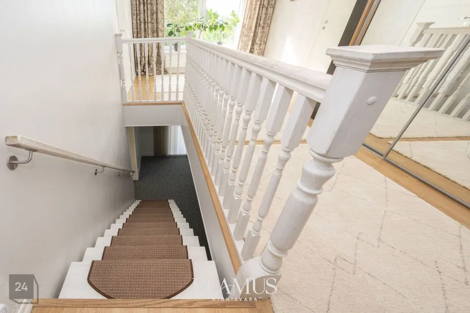 • 2. korrus: kaks magamistuba (suuremas magamistoas on sisseehitatud garderoob), köök, elutuba koos rõduga, vannituba ja WC, hall koos lisa garderoobiga.