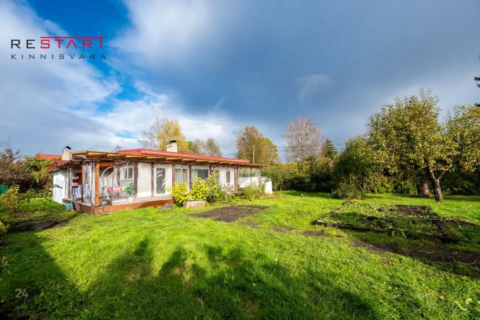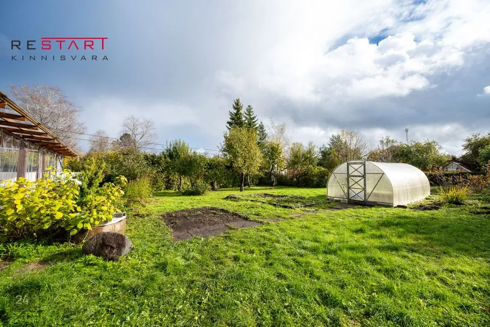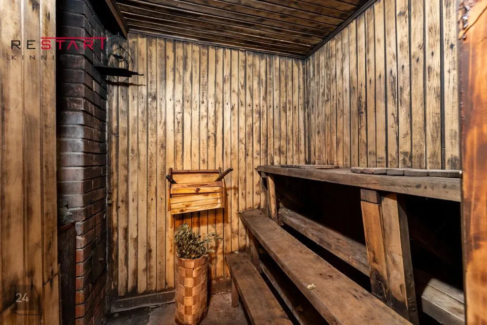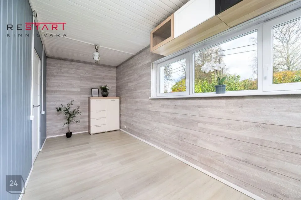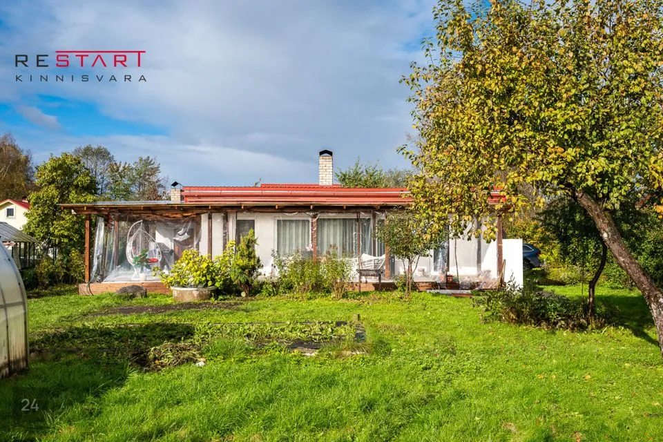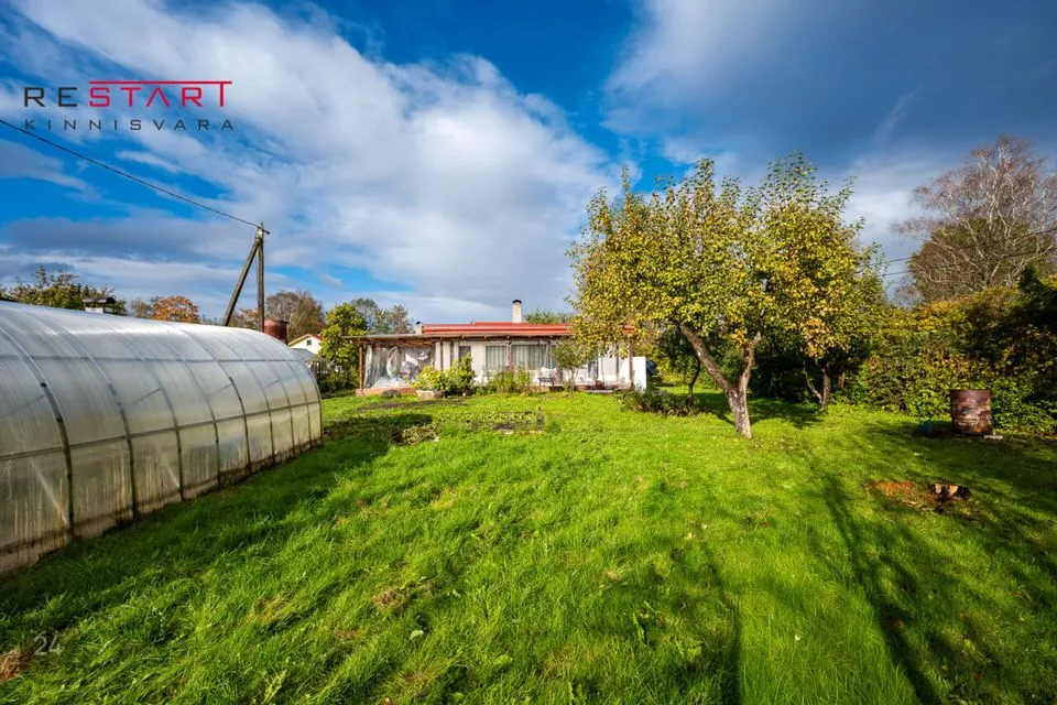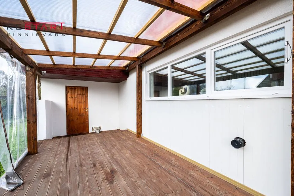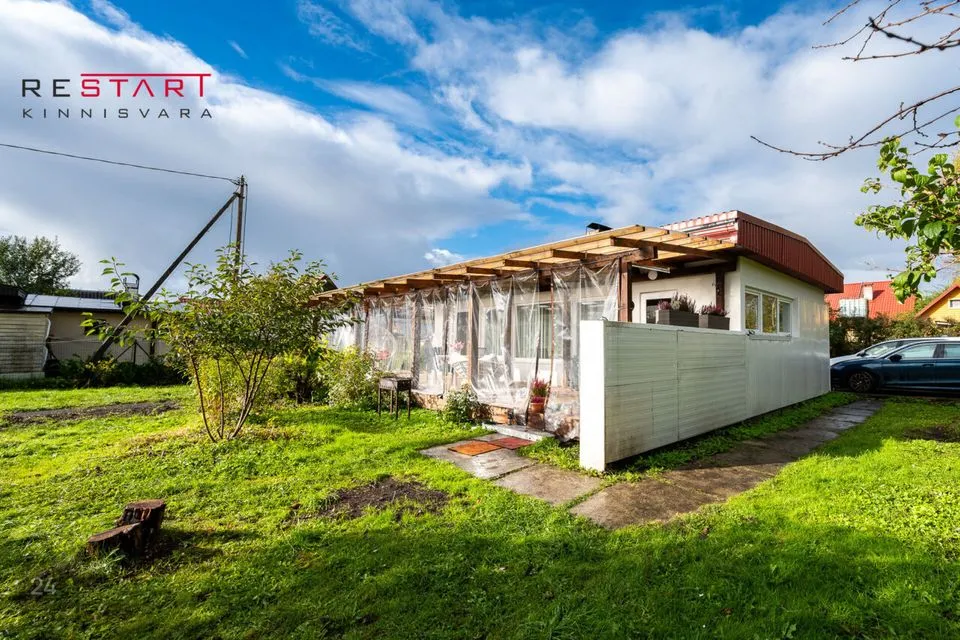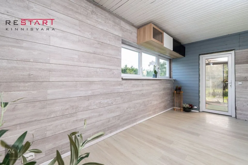 The interior includes an entrance hall, two bedrooms, a light-filled living room, separate kitchen, toilet, laundry room, sauna room, as well as a vestibule and garage. In recent years, several renovations have been made - electrical wiring has been replaced and the finish of bedrooms and living room has been refreshed. Triple-glazed windows have been installed, ensuring warmth and quiet in every season. The foundation has also been insulated and the house facade updated.