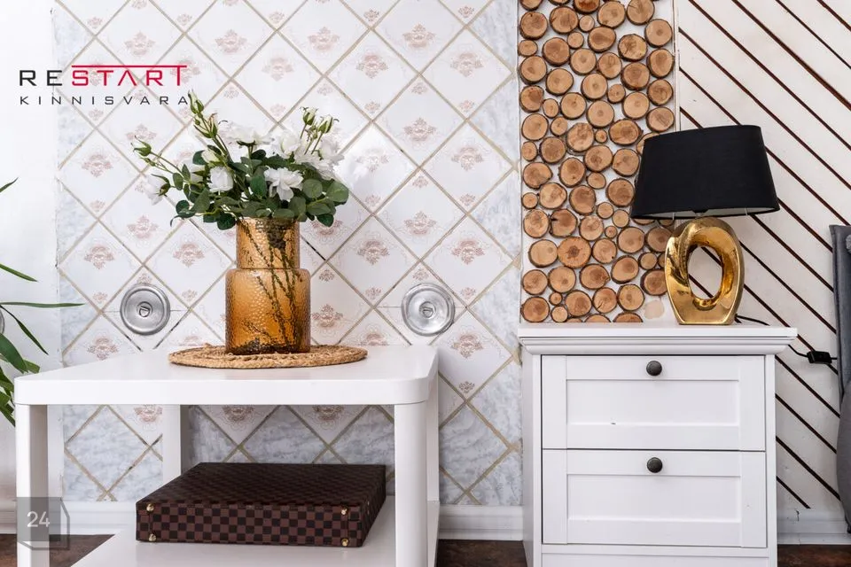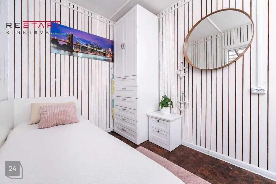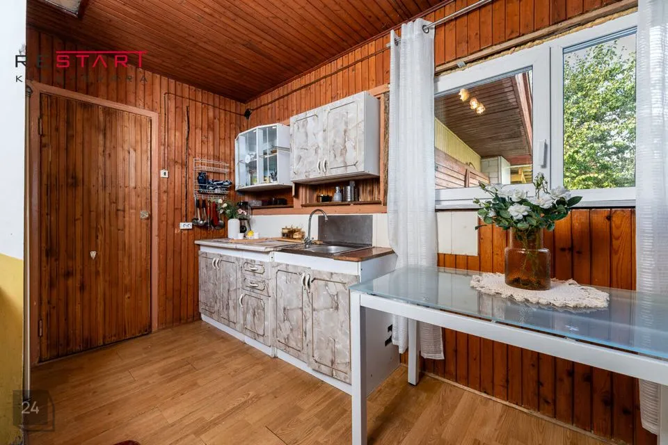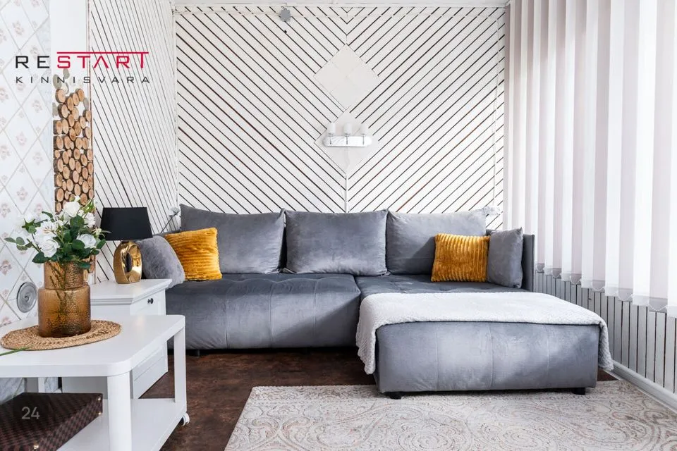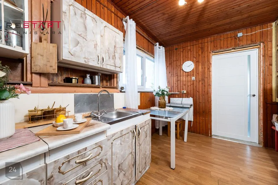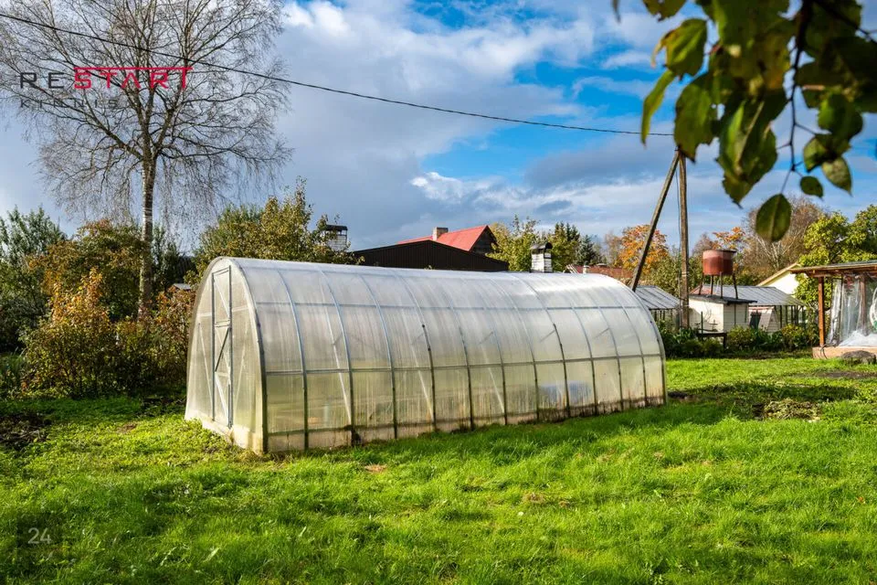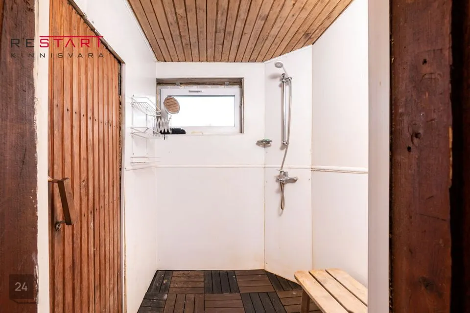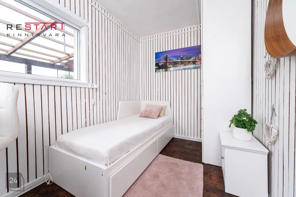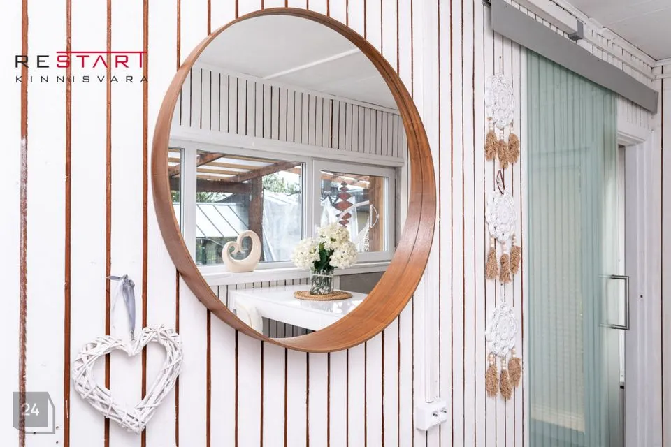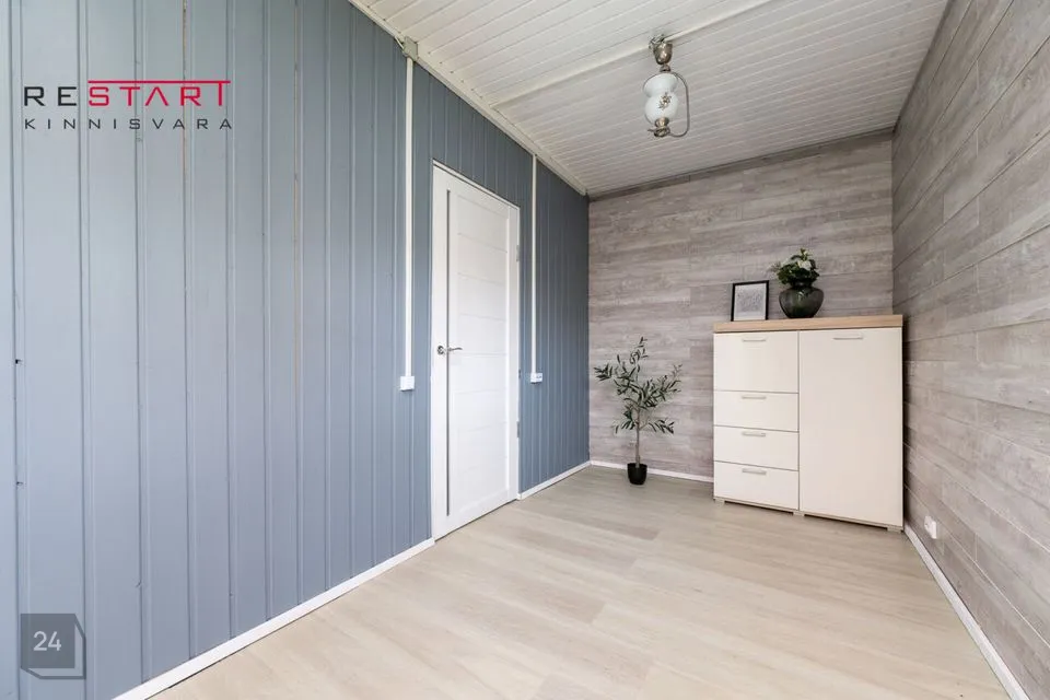 The interior includes an entrance hall, two bedrooms, a light-filled living room, separate kitchen, toilet, laundry room, sauna room, as well as a vestibule and garage. In recent years, several renovations have been made - electrical wiring has been replaced and the finish of bedrooms and living room has been refreshed. Triple-glazed windows have been installed, ensuring warmth and quiet in every season. The foundation has also been insulated and the house facade updated.