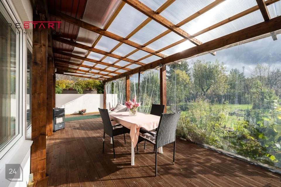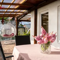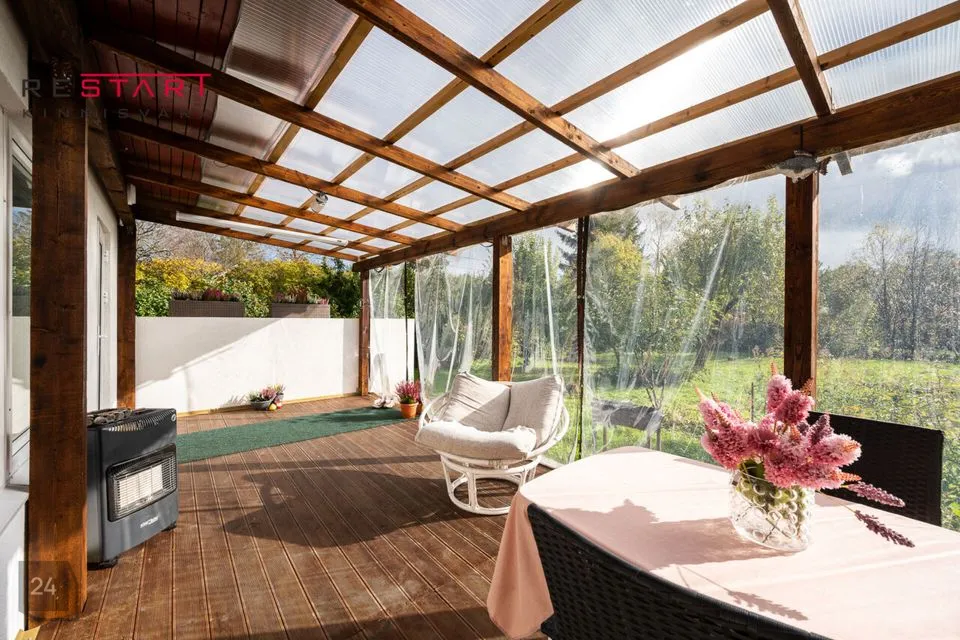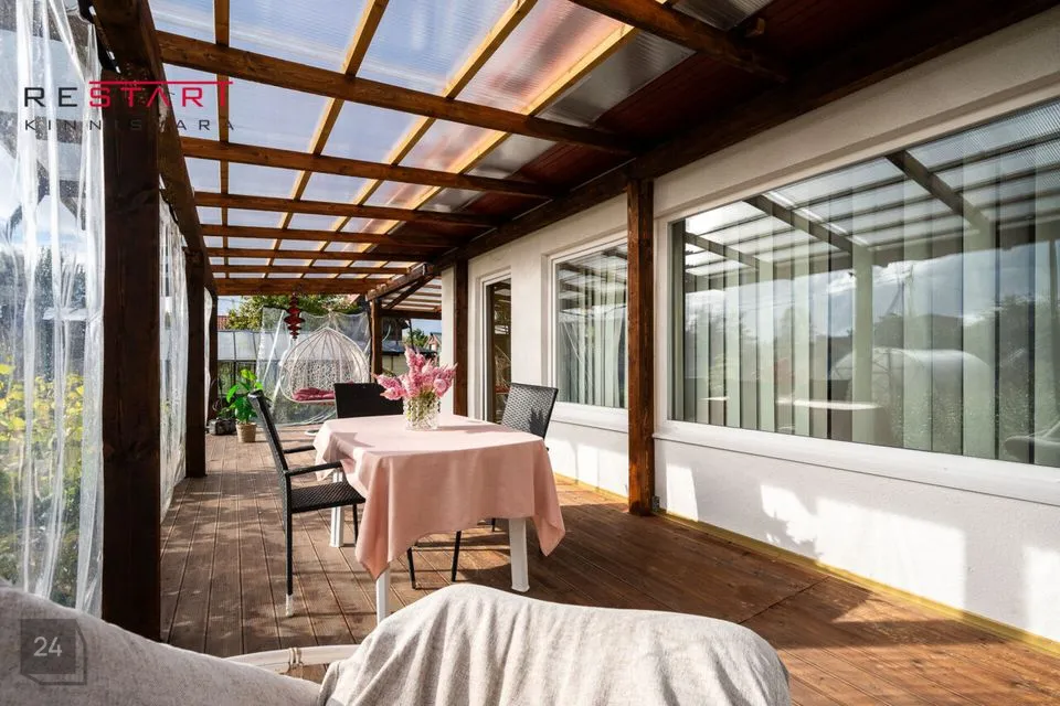 The house was built in 1987 and is made of stone, ensuring durability and excellent heat retention. The total area is 114 square meters, with an additional approximately 60-square-meter sun-facing terrace that creates a pleasant opportunity to enjoy morning coffee or summer evenings with family and friends. The living area is 72.5 square meters, with a convenient and practical layout.