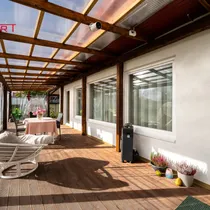The 876 square meter property is well-maintained with beautiful landscaping. The garden has fruit trees and berry bushes, a greenhouse, and plenty of space for both gardening and relaxation. The entire yard is spacious and private - a perfect spot for summer grill evenings in a quiet and green environment.