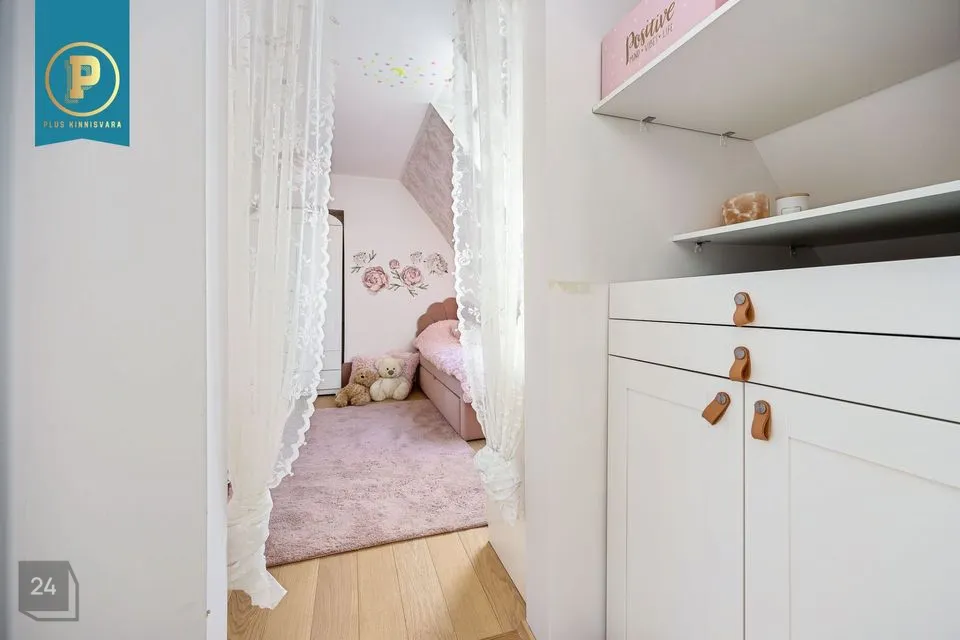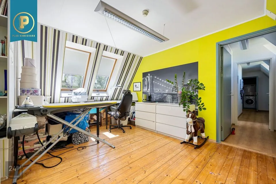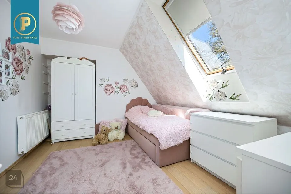 Teine korrus on magamis-, töö- ja mängutubade päralt. Kahes toas on rõdu. Samuti on teisel korrusel wc, pesumasin ning kuivati.