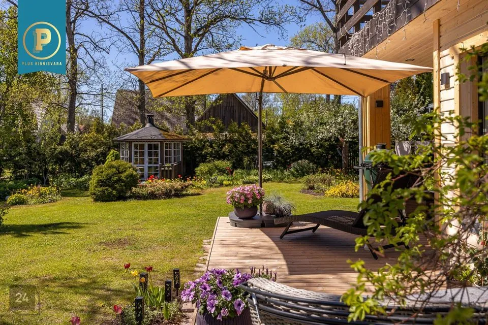 Kinnistul on privaatne. Seal on imeline iluaed, päikseline terrass ja grillmaja, kus saab ka külmemal ajal seltskonnaga aega veeta. Laste jaoks on mängumaja ja kiik.