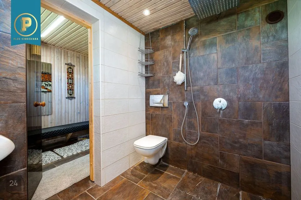 Elamu ja abihoone on ühendatud teise korruse kaudu. Maja on pidevalt järkude kaupa uuendatud. Esimesel korrusel asuvad avatud köök-elutuba koos veranda ja terrassiga ning wc ja pesuruumid koos kahe dušiga. Moodsas valges köögis on De Dietrich köögitehnika.
