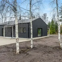 - Economical Panasonic air-water heat pump + underfloor heating throughout the house - Spacious living room with open kitchen and windows in three cardinal directions - Three separate bedrooms + separate walk-in closet/storage room - Possibility to convert storage room into an additional WC or utility room (water and sewage connections already present) - Pond-side location with green Aila village atmosphere near Saue city