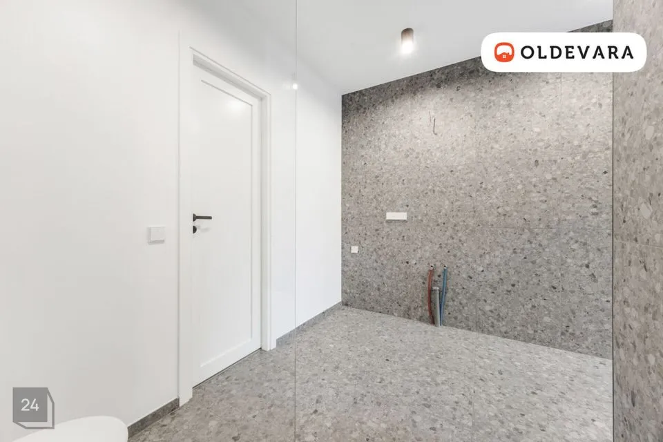 Vannituba ja WC asuvad ühes ruumis, kus on dušinurk klaasseinaga, WC-pott ja elektrikerisega leiliruum, lisaks otsepääs maja tagaküljele. Majas on eraldi garderoobi/panipaiga ruum, kuhu on ette valmistatud vee- ja kanalisatsiooniotsad, võimaldades soovi korral välja ehitada teise pesuruumi või WC. Tehnosüsteemid paiknevad eraldi sissepääsuga tehnoruumis.