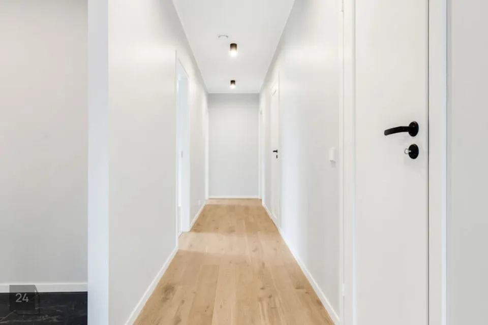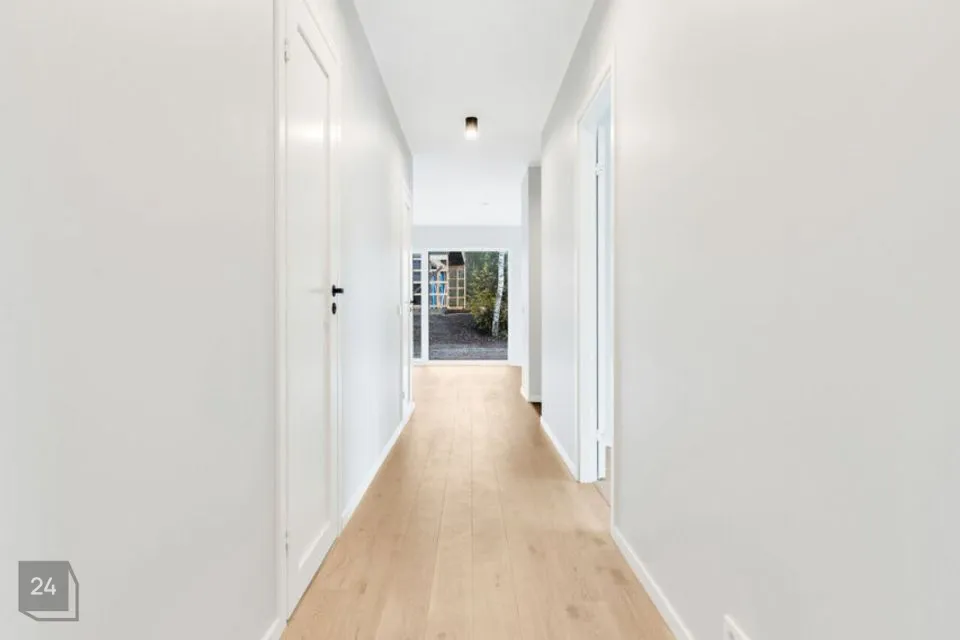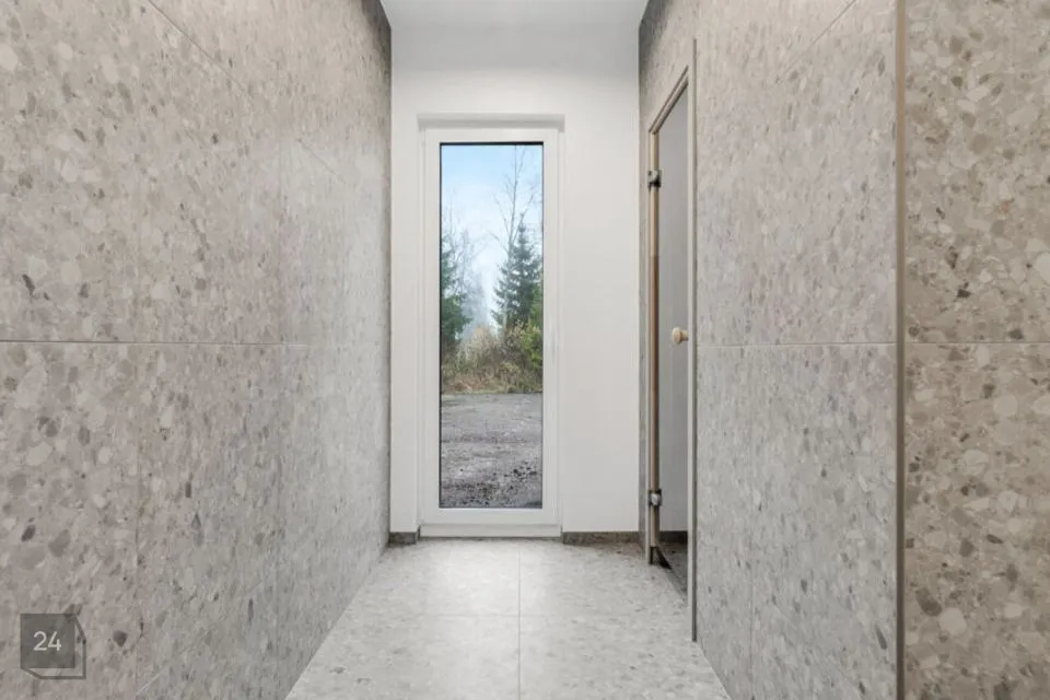 Siseviimistluses on kasutatud ühelipilist tammeparketti, heledaid neutraalseid toone ning suuremõõtmelisi plaate esikus ja märgades ruumides.