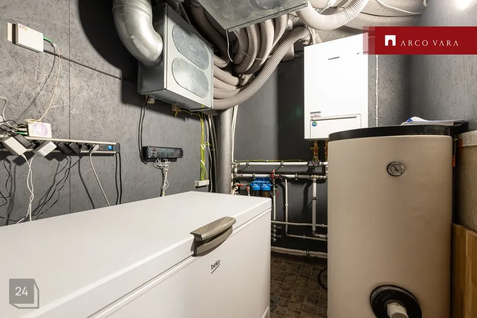 Kolmekordsed pakettaknad tagavad sooja- ja helipidavuse ning energiasäästlikkuse. Maja köetakse õhk-vesi soojuspumbaga, soojuskandjaks on vesipõrandaküte. Elutoas ja sauna eesruumis loob mõnusat kodusoojust kamin. Elamusse on paigaldatud elektribörsi hindade järgi toimiv küttesüsteem (HeadAdapt), mis reguleerib kütmist automaatselt vastavalt börsihindadele.