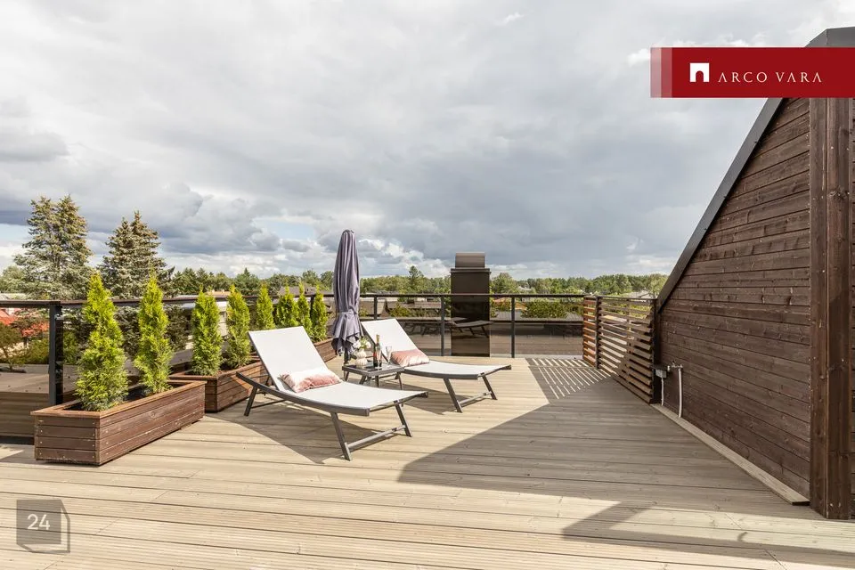 Kõikidest magamistubadest on pääs rõdule ning lisaks on võimalus päikesepaistel lõõgastuda 50 m2 suurusel katuseterrassil.