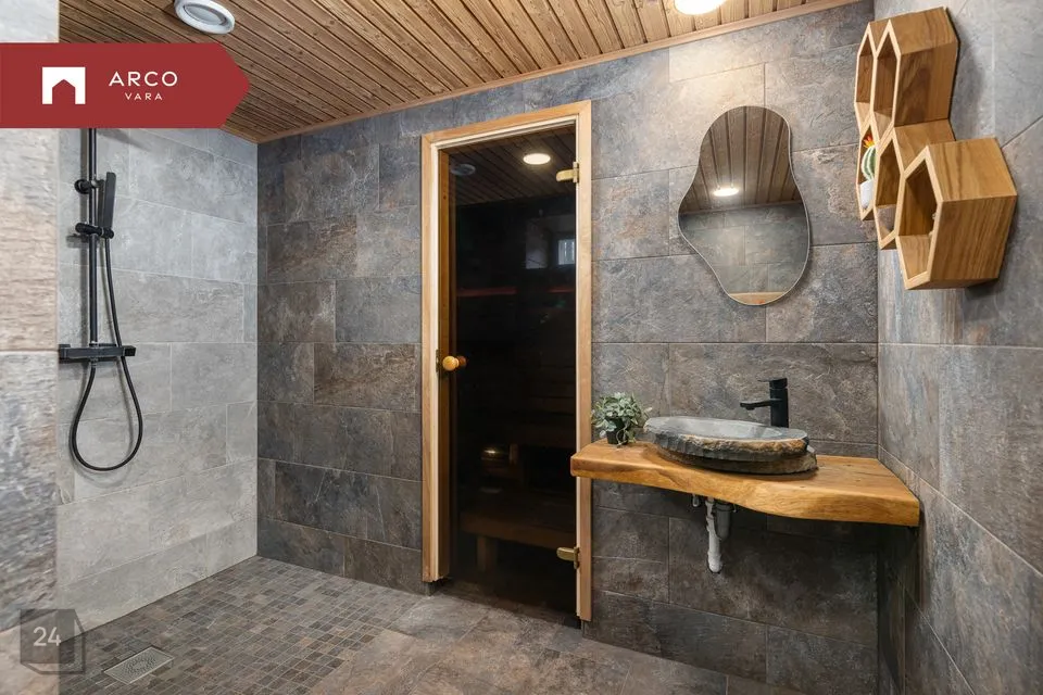 Esimeselt korruselt pääseb otse katusealusega väliterrassile (51 m2), kus on piisvalt ruumi veeta aega pere või sõpradega ning lisaks nautida massaaživanni mõnusid.