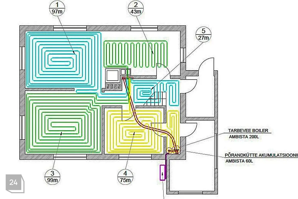 Võimalik lisada õhk-vesi süsteemile vahemoodul ja rajada küte ka ülemisele korrusele (radiaatorid või põrandaküte).