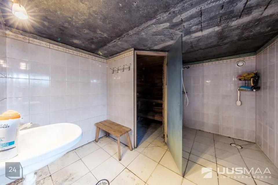 Keldriruumid korrastamata, saunaruumis ning pesuruumis põrandakatteks keraamiline plaat, leiliruumi seinakatteks laudis.