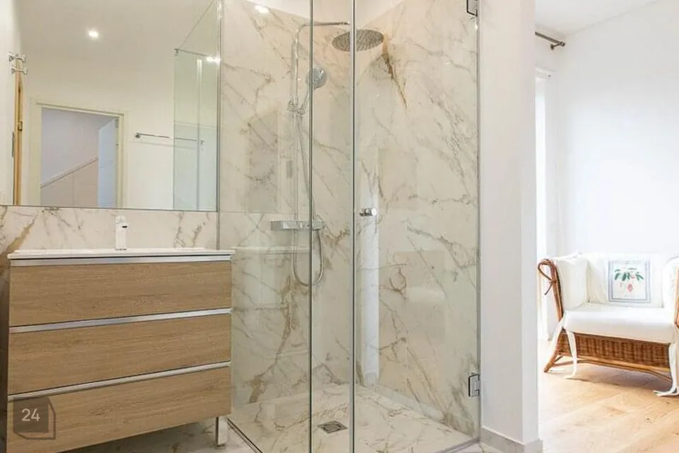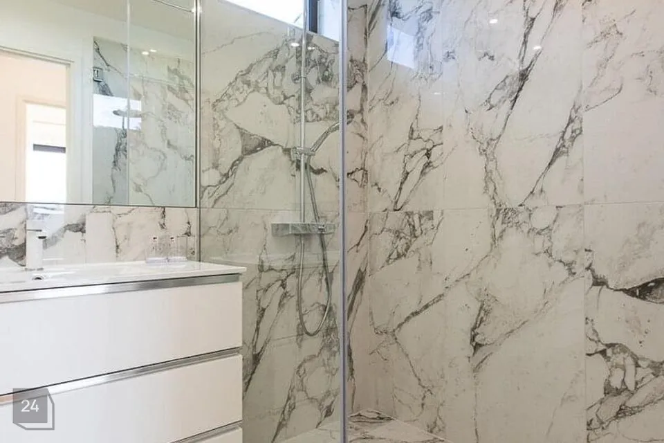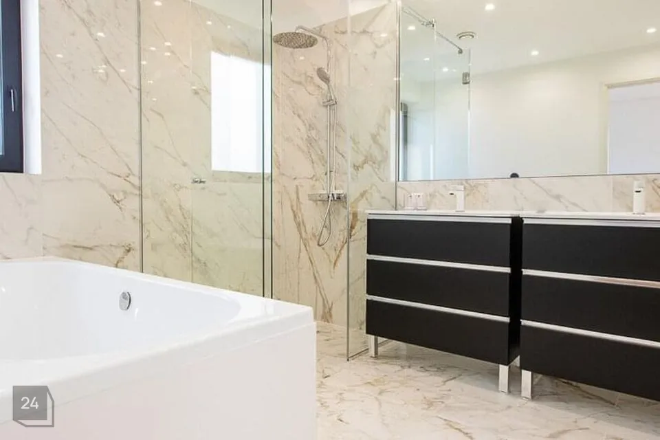 Köögipõrand ja niisked ruumid plaaditud. Seinad värvitud. Vannitubades kasutatud kvaliteetset marmor mustriga plaati.