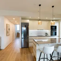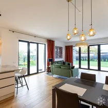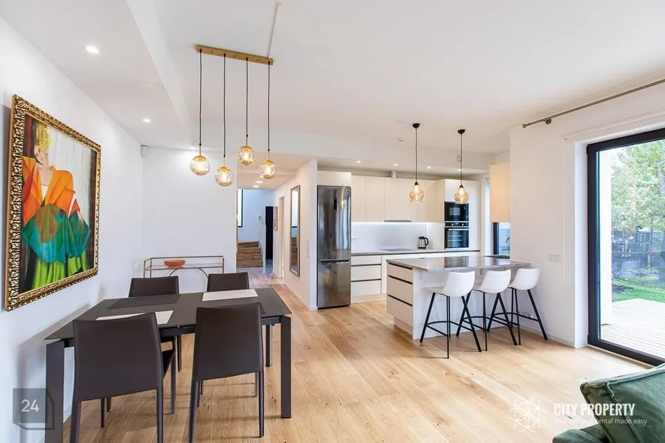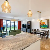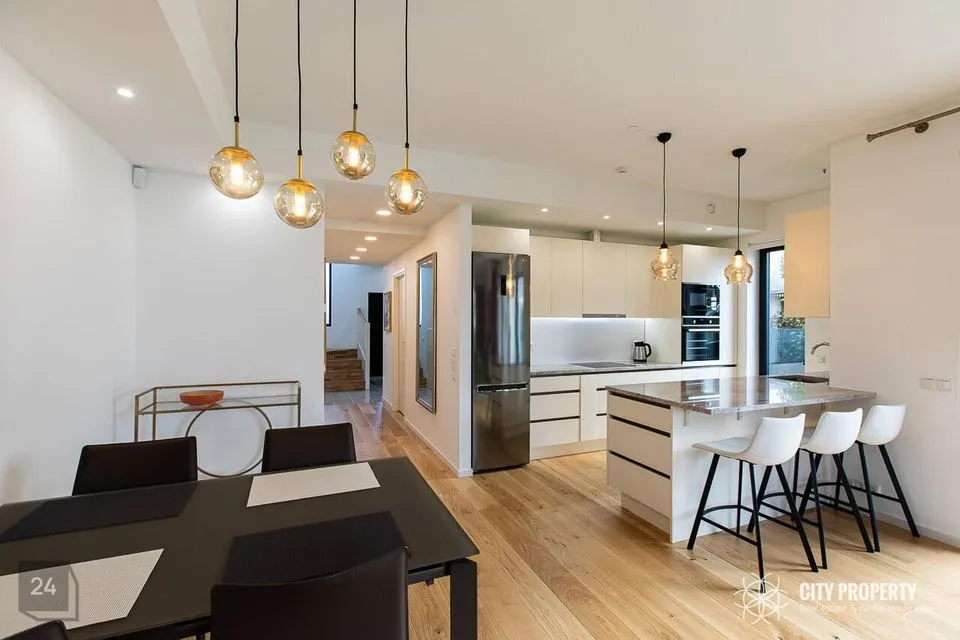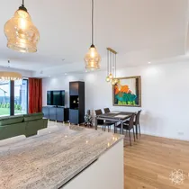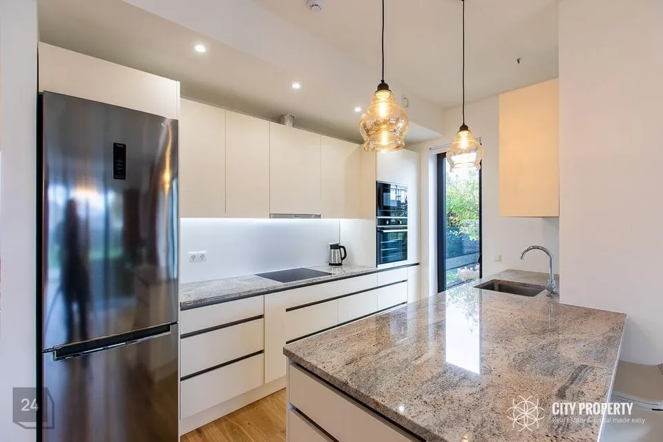 Köögimööbel Blum furnituuriga, Franke valamu, LG külmik, muu tehnika Electrolux (ind.pliit, ahi, nõudepesumasin, mikrolaineahi). Töötasapind naturaalne graniit.
