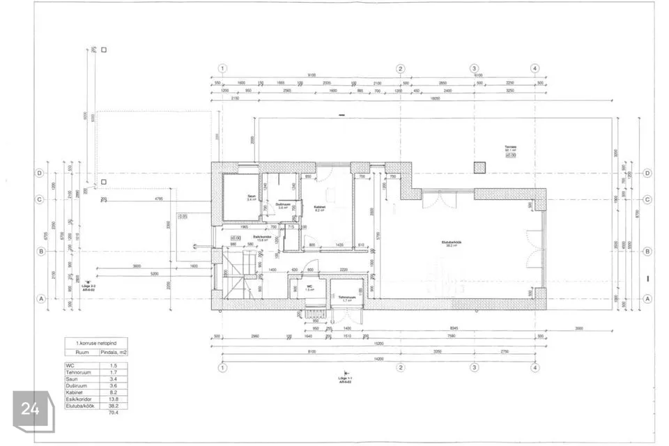 Maja elamispind: 141,3m2, terrass 59,4 m2, rõdu 13m2.