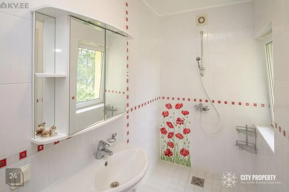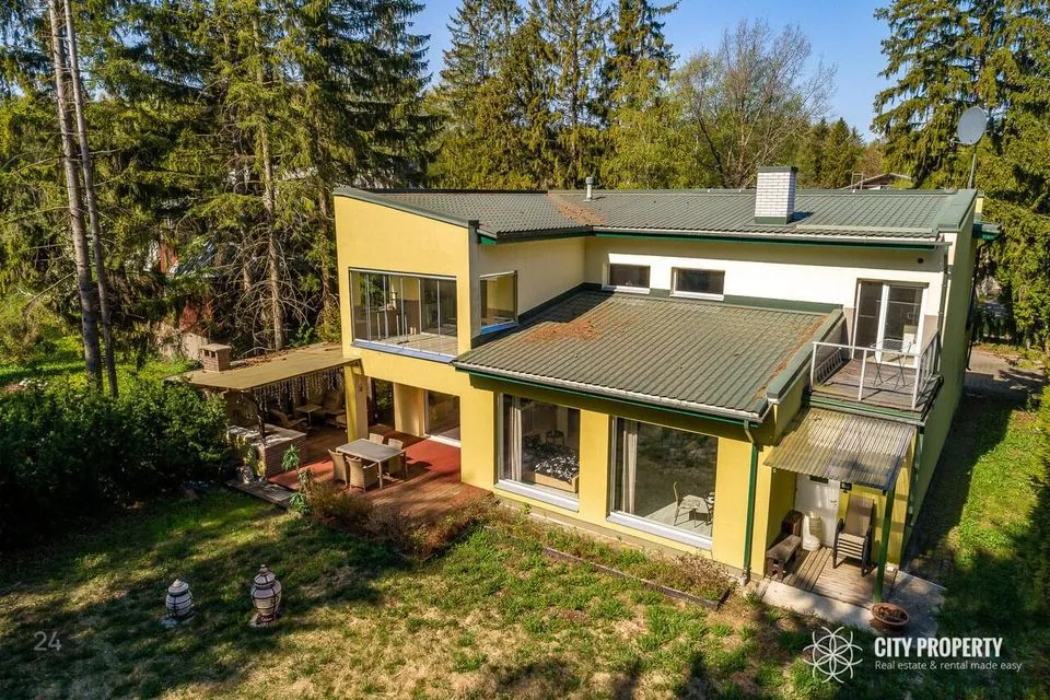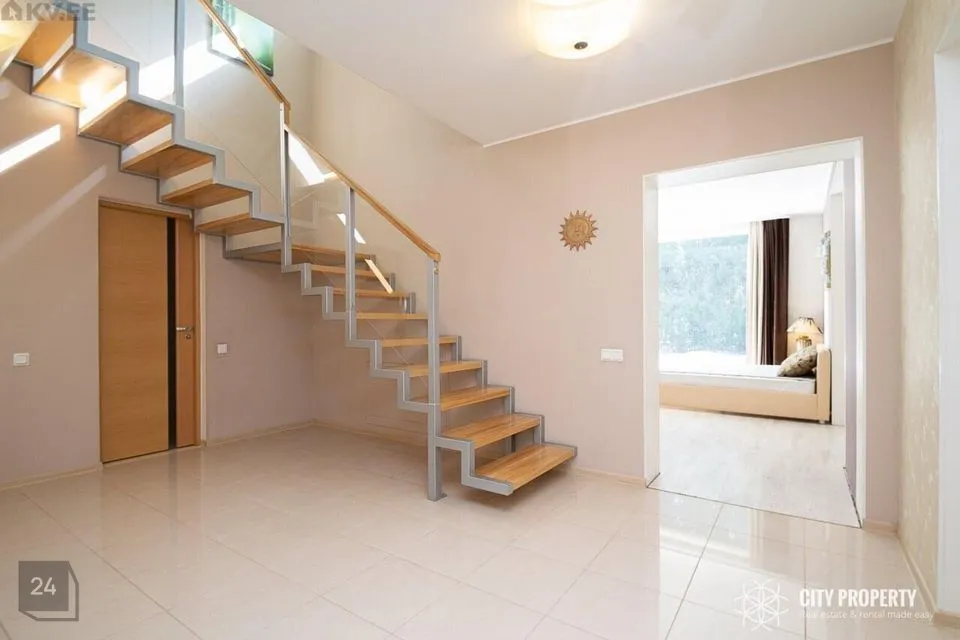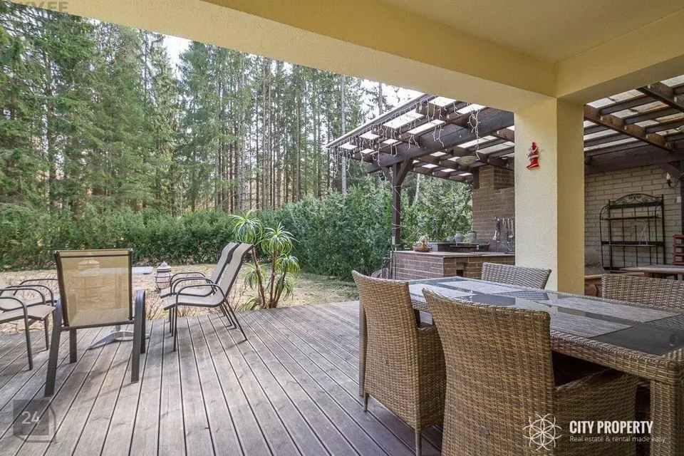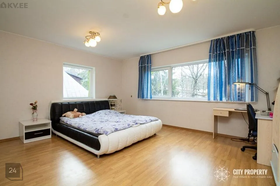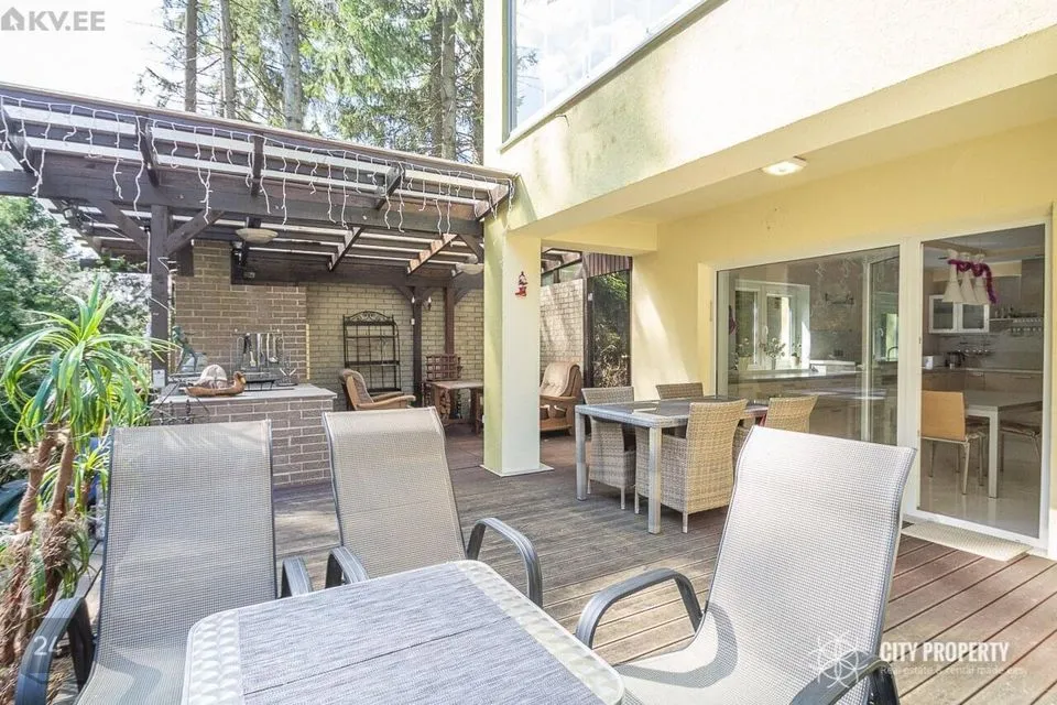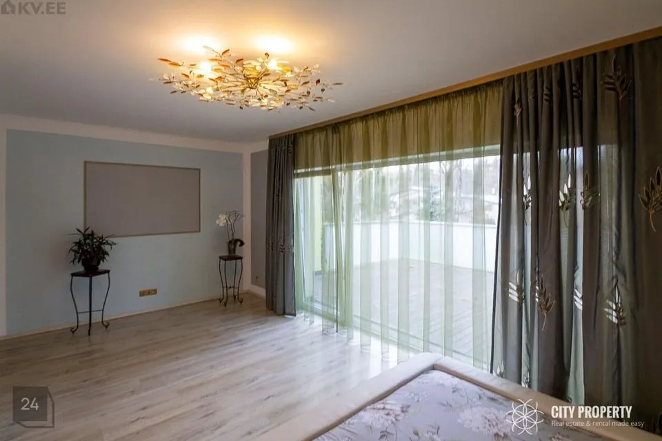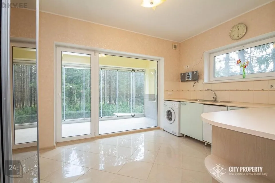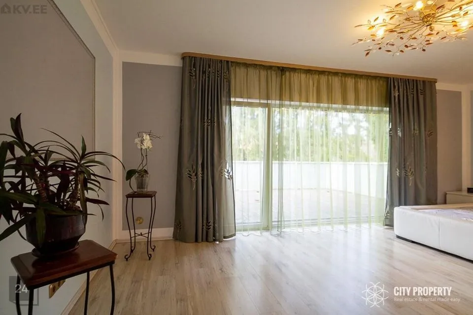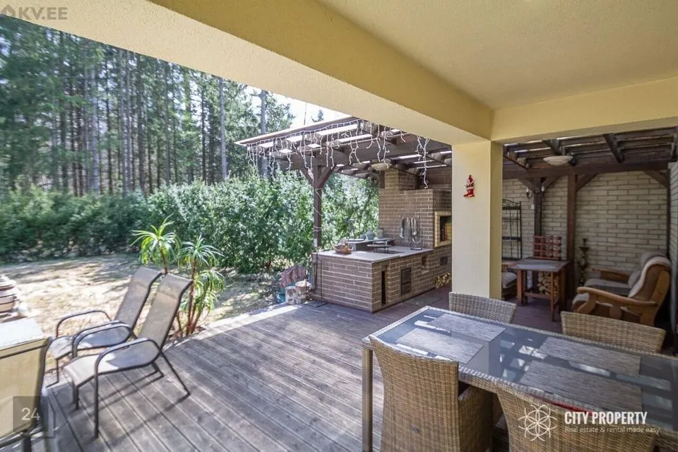 Maja on läbimõeldud planeeringuga, kus iga ruum on funktsionaalne ja praktiline. Siseviimistluses on kasutatud kvaliteetseid materjale, heledaid värvitoone ja tapeete. Tubades katab põrandaid parkett. Vannitoas, köögis, esikus ja tualetis katab põrandad keraamiline plaat. Eramu ümbrust kaunistab kõrghaljastusega loodus ja marjapõõsad. Majale on paigaldatud turvasüsteem. Majja sisenedes avar esik/garderoob, kuhu on mugav paigutada üleriided ja jalanõud. Esikust vasakul paikneb puuküttega saun, sauna eesruum, dušš ja eraldi WC. Esikust paremal paikneb kabinett, antud ruumist on võimalik teha ka eraldiseisev magamistuba. Esikust on olemas pääs garaaži. Esimesel korrusel on ruumikas kaminaga elutuba mis sai värskenduskuuri 6 kuud tagasi ja söögituba, elutoast pääseb privaatsesse hoovi kus asub suur ja päikeseline terrass. Terrassil asuval väliköögil on puuküttega pliit ja suitsuahi. Kööki sisustab kvaliteetne köögimööbel koos integreeritud Siemens tehnikaga (elektripliit, elektriahi, kubu, külmkapp, nõudepesumasin, mikrouun). Köögitasapinda katab naturaalne kivi, mis loob luksusliku meeleolu. Teise korruse eesruumist pääseb walk-in garderoobi ja eraldi seisvasse majapidamisruumi, kus toimub kogu pesupesemine, kuivatamine ja triikimine. Antud ruum on varustatud sisseehitatud mööbliga. Esimesel korrusel on välisukse kõrval eraldi WC. Teisele korrusele viib kvaliteetne klaaspiirdega puidust trepp. Olemas neli magamistuba, kus kahes magamistoas on olemas walk-in garderoob, mis on funktsionaalse ja praktiline. Suurest magamistoas pääseb otse vannituppa ja tualetti ning terassile. Majaaknad on osaliselt kaetud rulookardinatega. Maja üldpind koos terrassidega moodustab 349 m2 millest 72 m2 on terrassid.