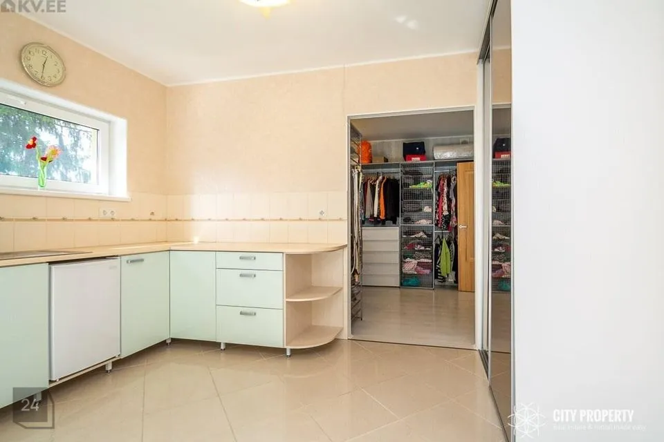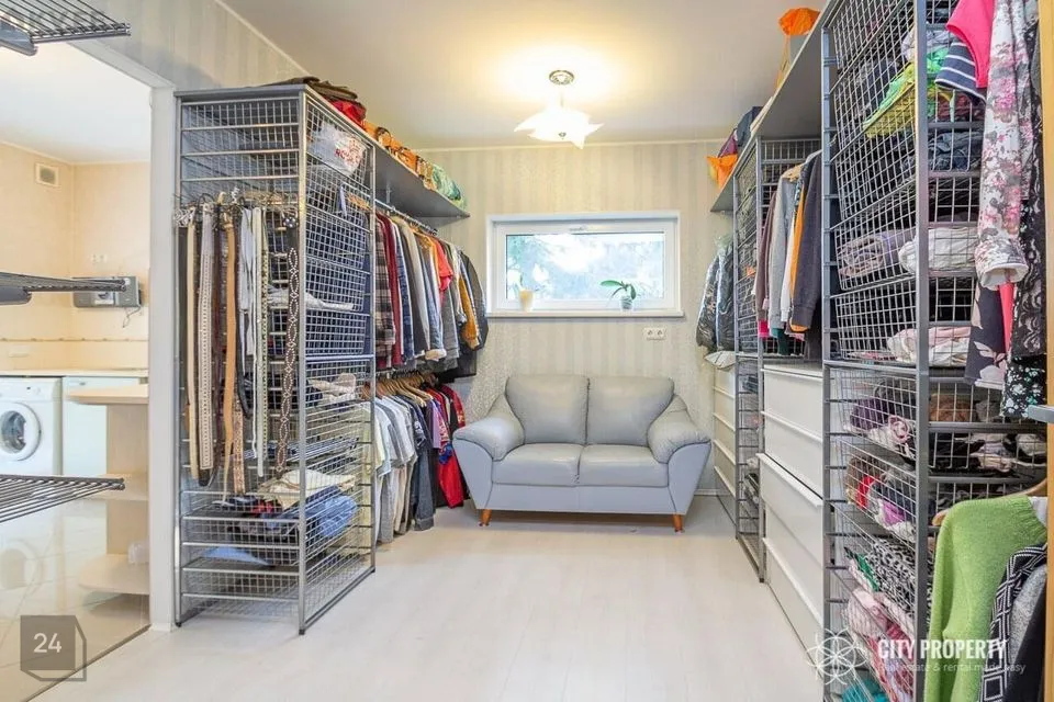 Eraldiseisev walk-in garderoob 11m2, koos abi-, pesuruumiga 10,2 m2 ja pääsuga klaasitud rõdule 6,8 m2.