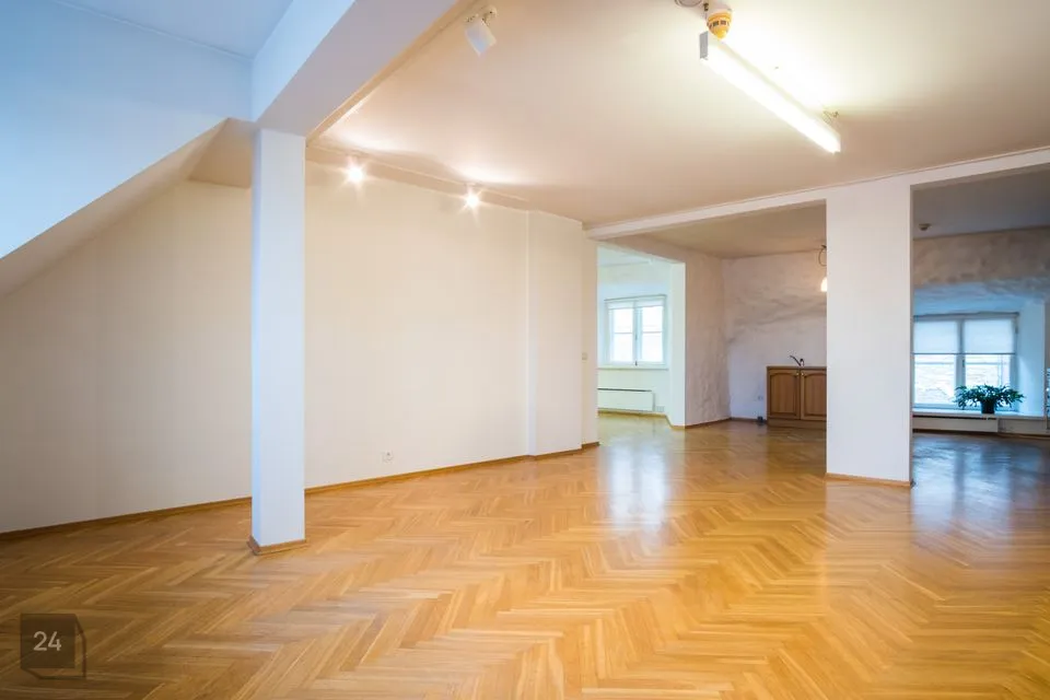 4. korrus - mitteeluruum 99,7 m2, mis jaguneb kolmeks toaks (23,7 m2, 27,2 m2, 36,7 m2) + kööginurk + wc/ duširuum. Pinnale on koridorist 2 sissepääsu.