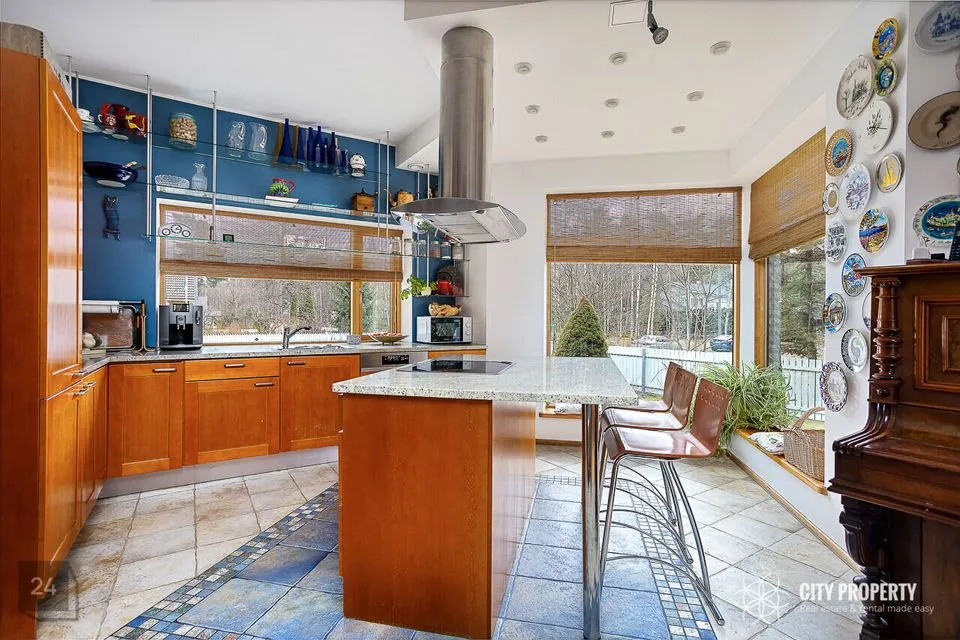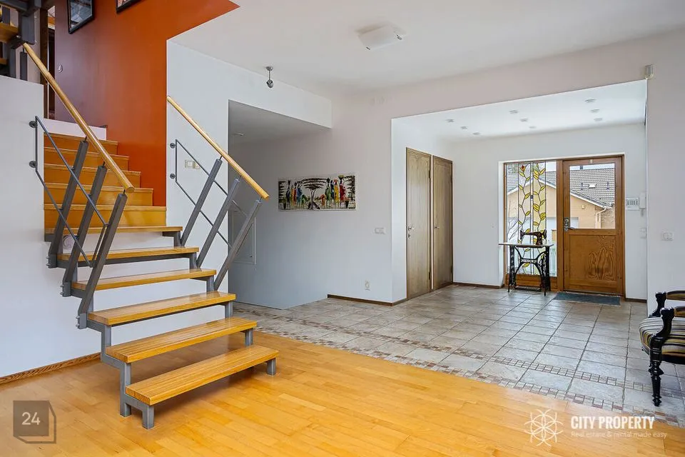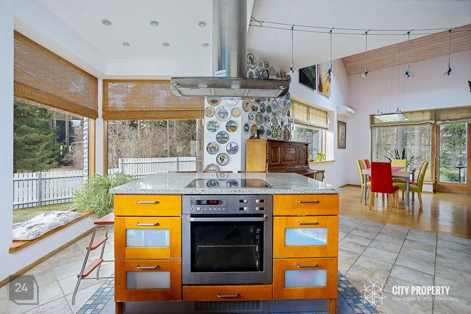 Palusambla tänava poolses osas asuvad külalistele avatud ja pere ühisolemiseks mõeldud ruumid- avar kamina ning sööginurgaga läbi kahe korruse avatud laega elu- söögituba ja köök, sööginurgast pääseb välja päikeselisele terrassile.