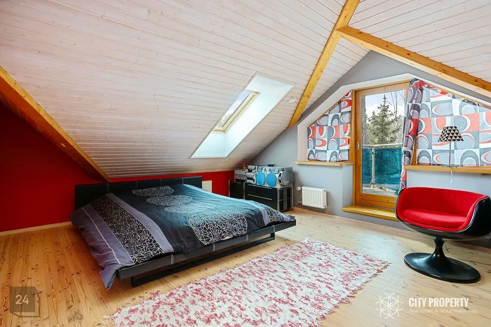Kahes suuremas magamistoas on sisseehitatud mahukad garderoobikapid. Hubasuse loomiseks on üleval ühes magamistoas kamin/ahi. Ka elutoas on kaunis kamin mis loob õhtutundidel meeleolu. Parima filmielamuse jaoks paigaldatud kodukinosüsteem.