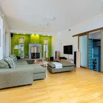 Põrandaid katab laudparkett. Esikus ja köögis Jupiter callisto stone kiviimitatsiooniga LVT plaadid.