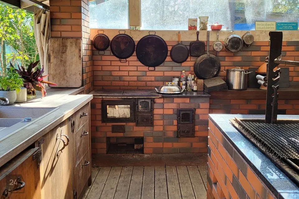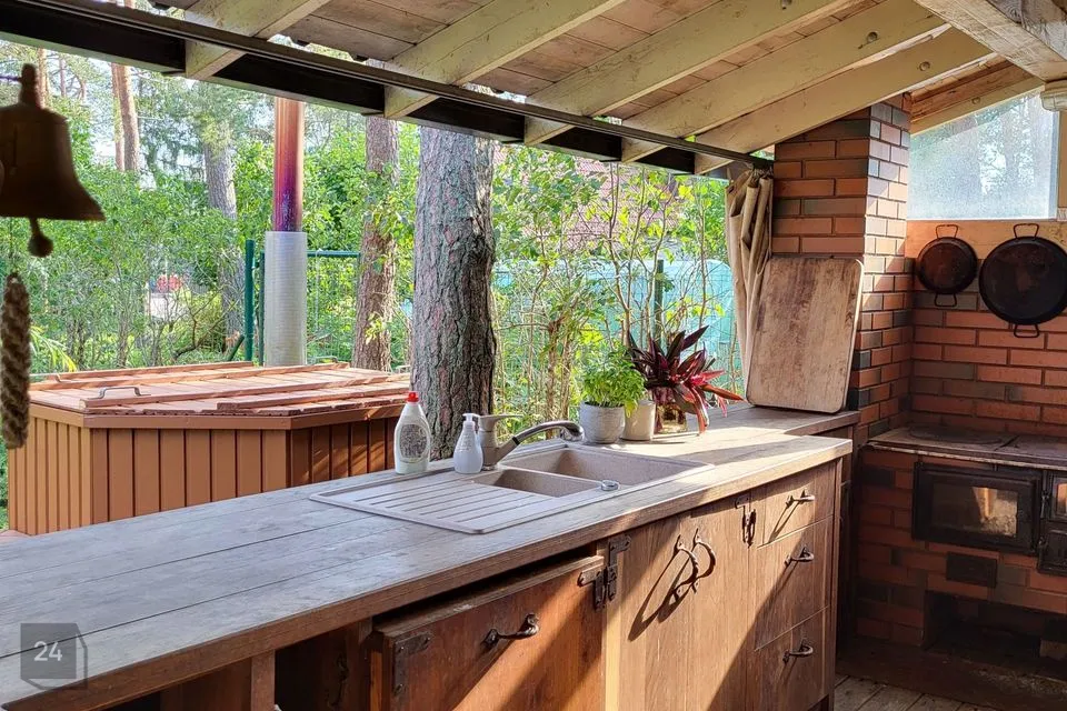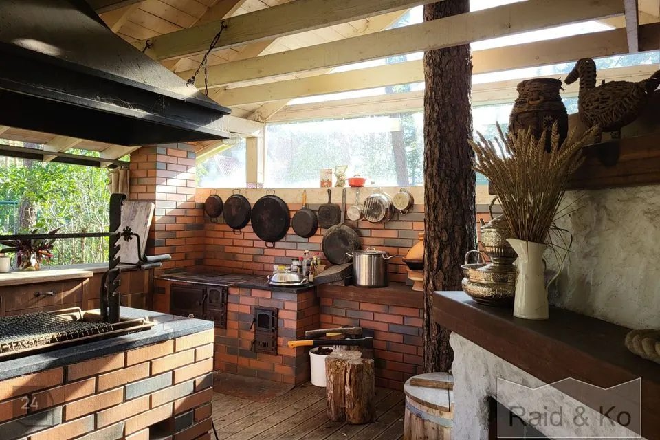 Luksust ja mugavust lisab Haldja 4 aias paiknev täiuslikult sisustatud väliköök. Olemas on kamin, kahe lõõriga suitsuahi (nii külm- kui kuumsuits), vardaga grill, praeahjuga puupliit, valamu, nii külma kui ka sooja vee ühendus, nõudepesumasin, külmkapp.