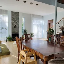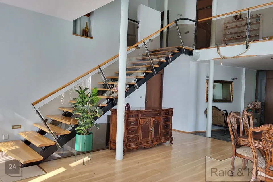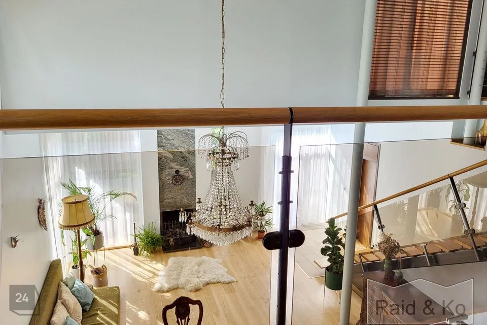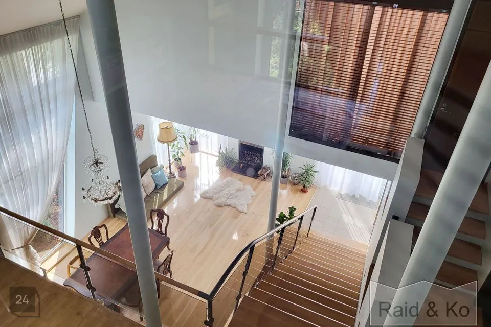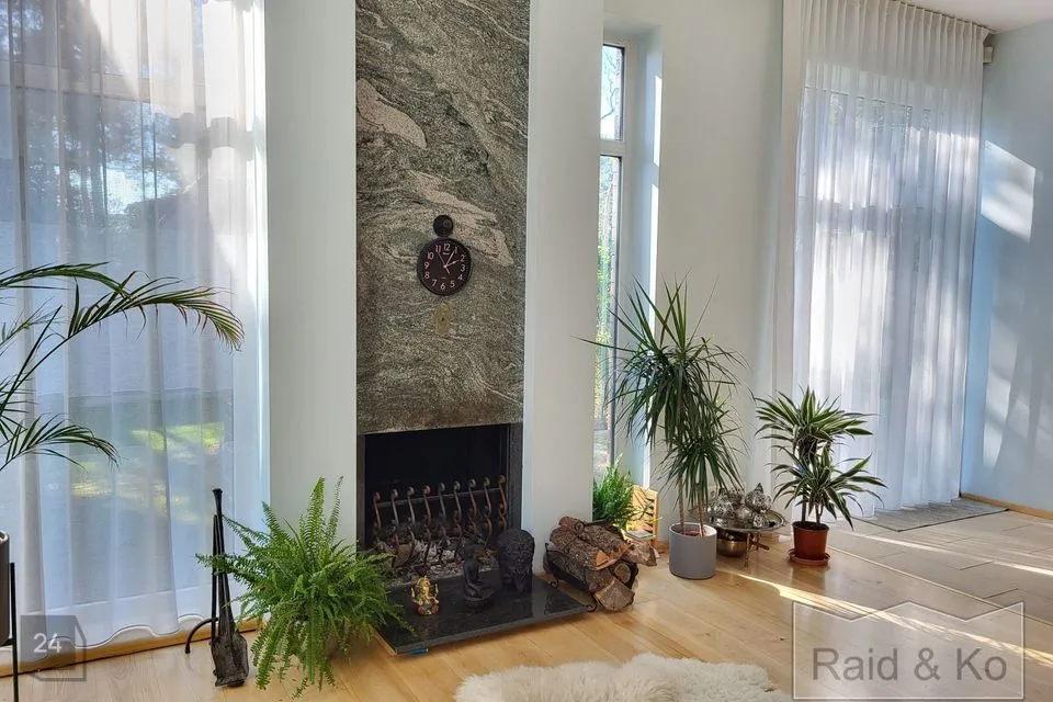 Maja südameks on läbi kahe korruse kõrguv aatrium, mille ümber paiknevad ülejäänud eluruumid. Muidugi on olemas ka kamin!