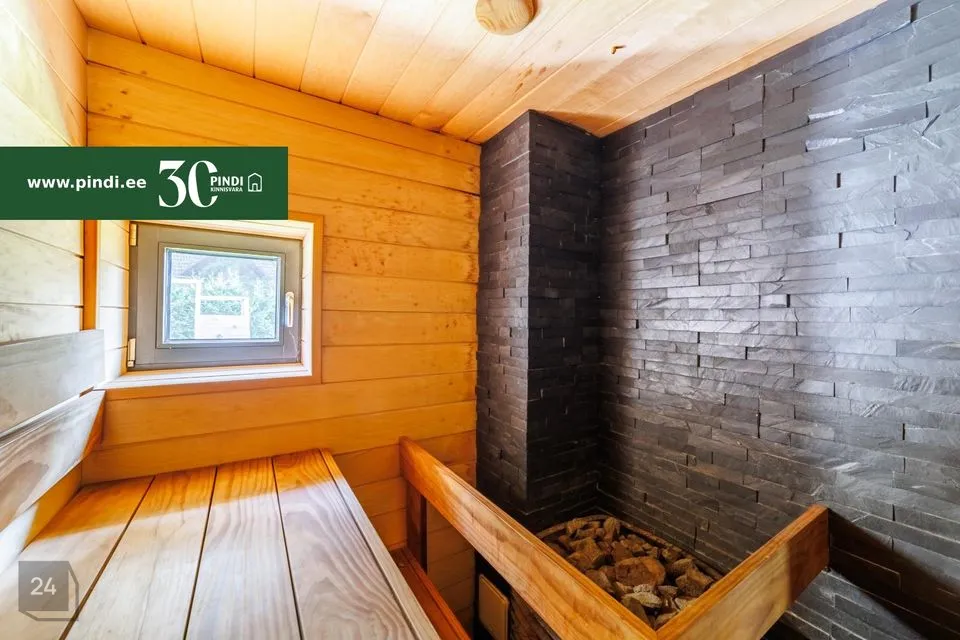 - Kabinet (6,6 m²), panipaik (3,7 m²), saun (3,5 m²), saunaga seotud eesruum (9,8 m²) ning majapidamisruum (4,7 m²), millel on eraldi väljapääs hoovi