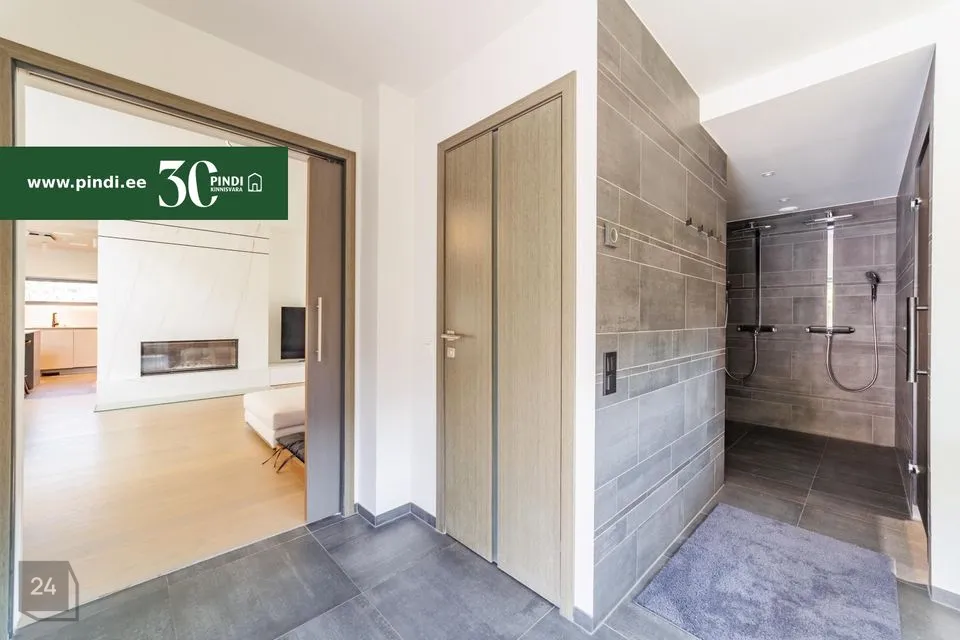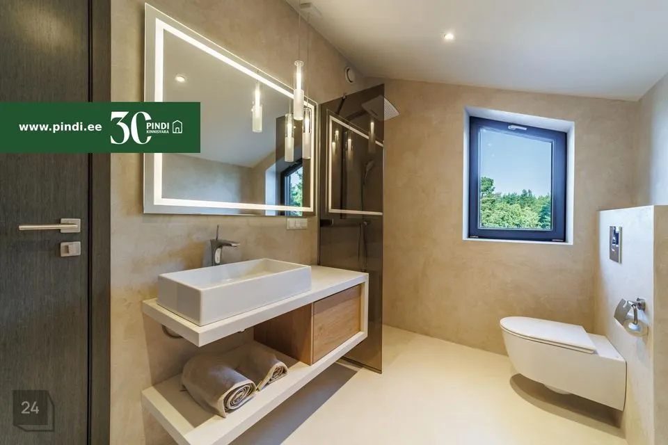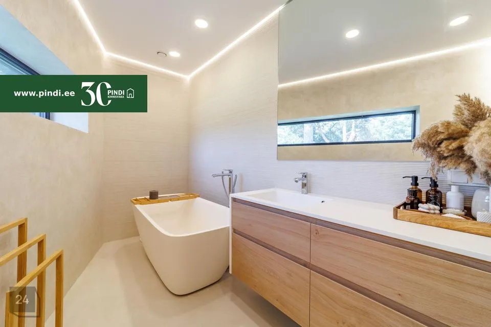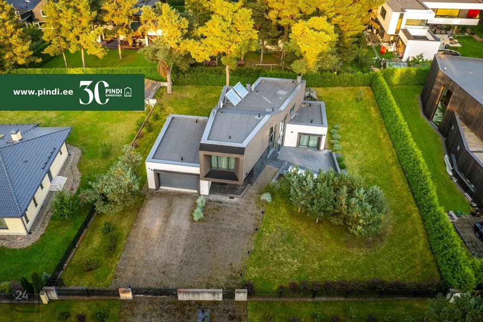 Köetava pinnaga 254,6 m² eramu paikneb suurel ja privaatsel männipuudega kinnistul, kus on teostatud kaunis haljastus. Lisandväärtusena on olemas välibassein, millel on küte ja võimalus kasutada aastaringselt. Majas on läbimõeldud ja funktsionaalne planeering, mis tagab ideaalse ruumikasutuse ja mugavuse igapäevaseks eluks.