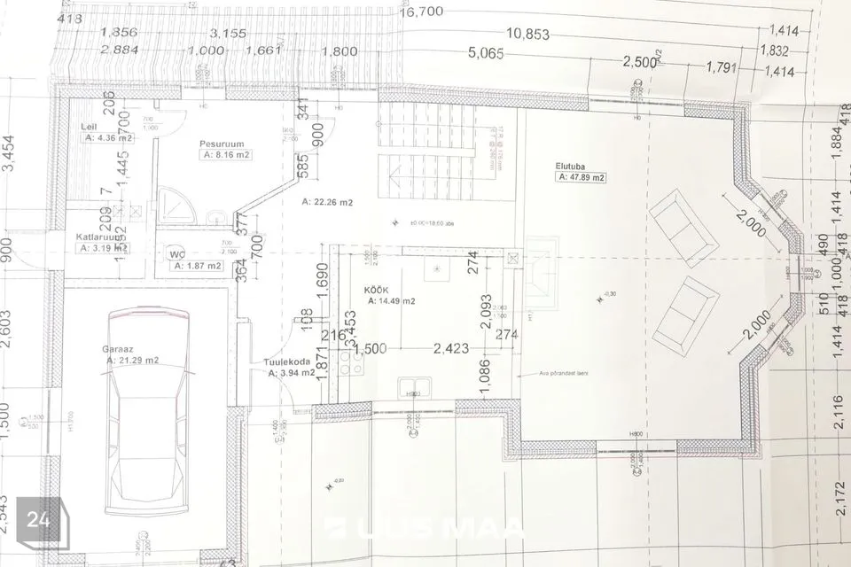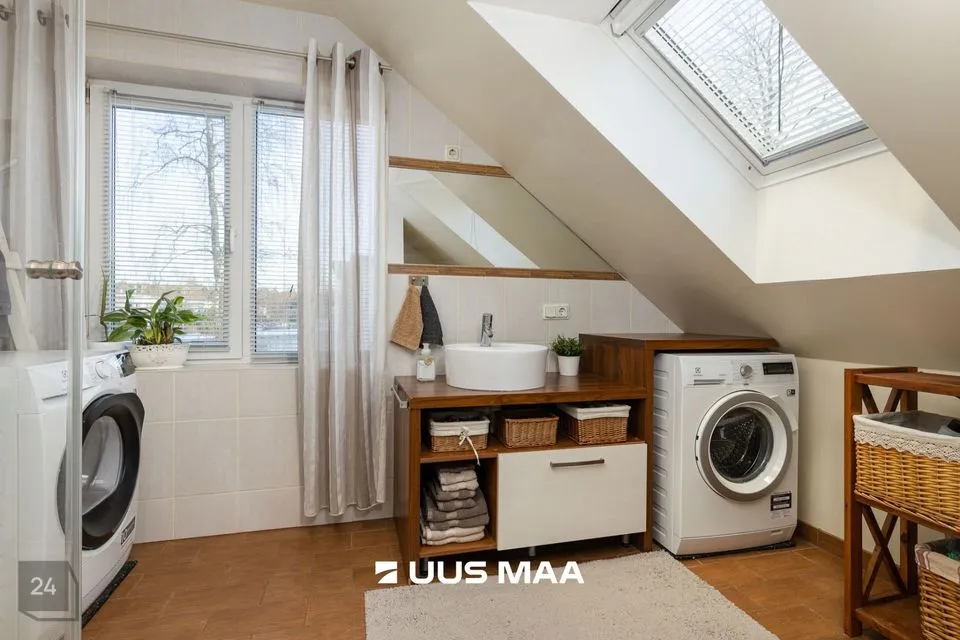 • 3 magamistuba, suur elutuba poolavatud köögiga, 2 pesuruumi, puuküttega saun, garaaž.