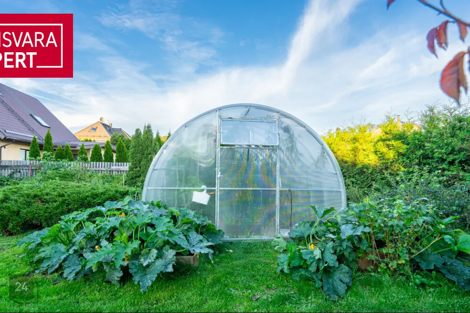 -Maakelder (6 m²), kuur, kasvuhoone ja kiviparkett maja ees