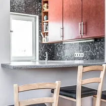 -Avatud esik-tuulekoda (20 m²), köök-elutuba kaminaga (40 m²)