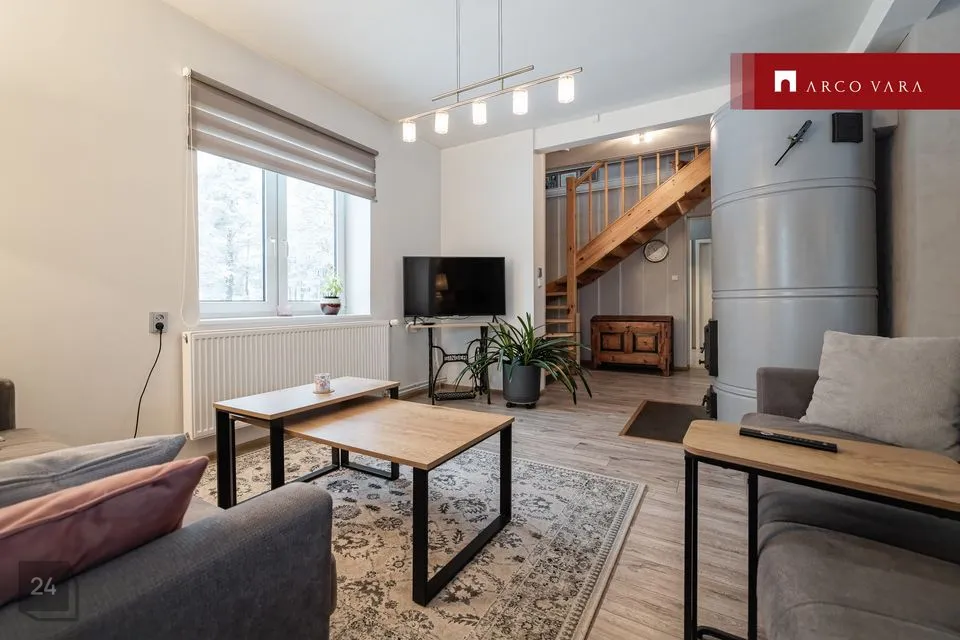 Maja esimesel korrusel asub avar ja valgusküllane 43 m2 suurune avatud köögiga elutuba, tuulekoda, esik, 9 m2 suurune garderoob ning ruumikas 8 m2 vannituba. Teisele korrusele viib korralik tugev puidust trepp ning seal asub kaks suurt magamistuba (18 m2 ja 16,5 m2), WC ning 11 m2 suurune trepihall, mis on kasutusel kodukontorina. Keldrikorrusel on panipaigaks 6,8 m2 suurune ruum.