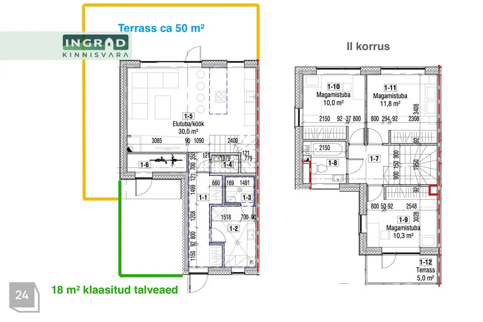 - Klaasitud ja köetav talveaed (18 m²) – mõnus koht aastaringseks puhkamiseks.
