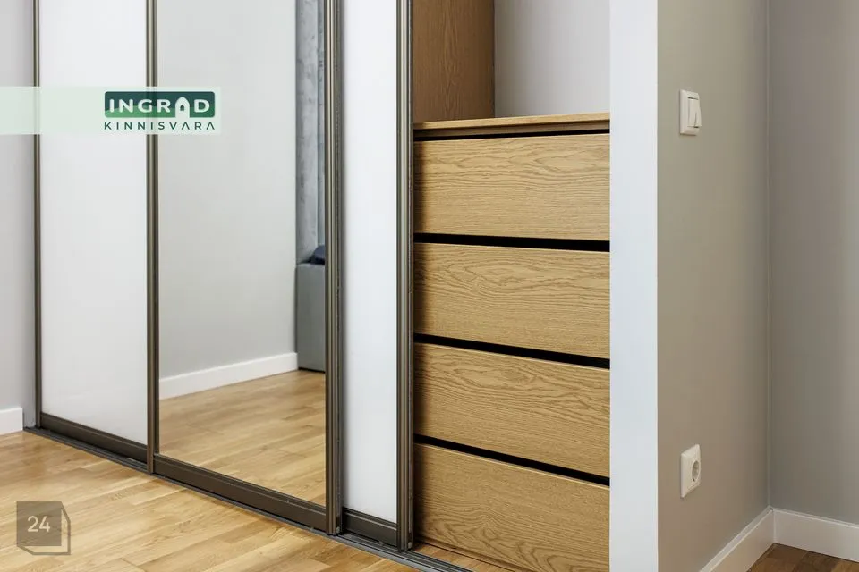 - Kõikides tubades, sealhulgas esikus, on mahukad sisseehitatud kapid